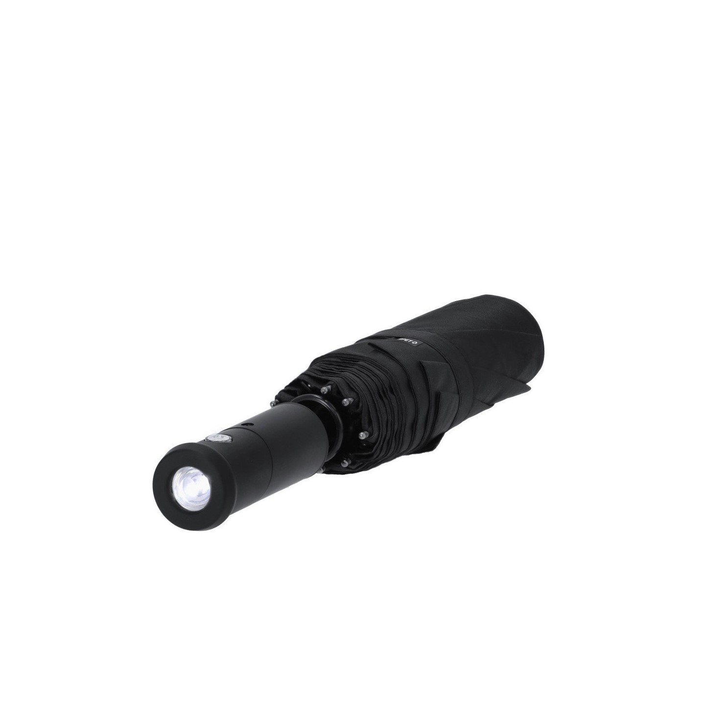 El Paraguas Pulsak, fabricado en RPET, incluye un mango linterna giratorio y apertura automática. Personalizable con tu logotipo, ideal para promover la sostenibilidad.