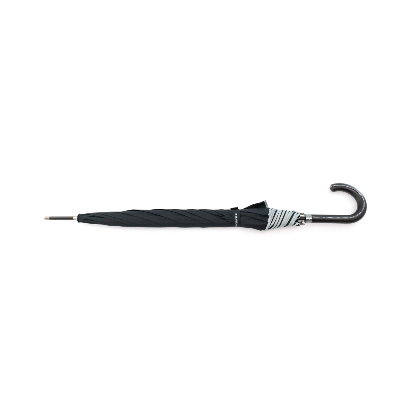 El Paraguas Royal de Antonio Miró se presenta en una funda con el logotipo de la marca, añadiendo un toque de exclusividad. Además, cuenta con una cinta con accesorio de ajuste, que te permite asegurar el paraguas cuando está plegado, evitando su apertura accidental y garantizando su fácil transporte.