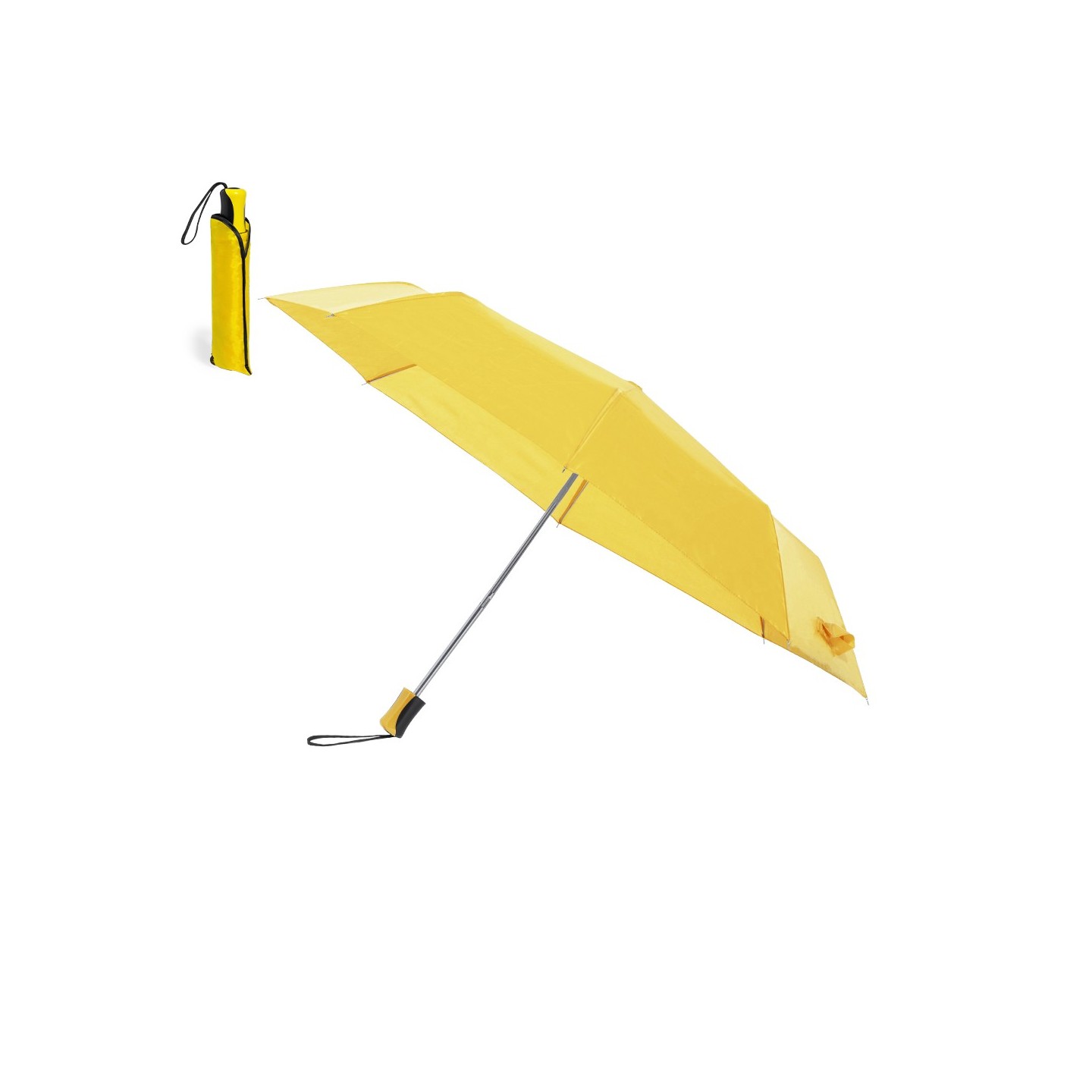 El Paraguas Sandy es de diseño plegable de poliéster 190T, varillas metálicas, mango ergonómico y funda a juego. Combinación ideal de estilo y funcionalidad
