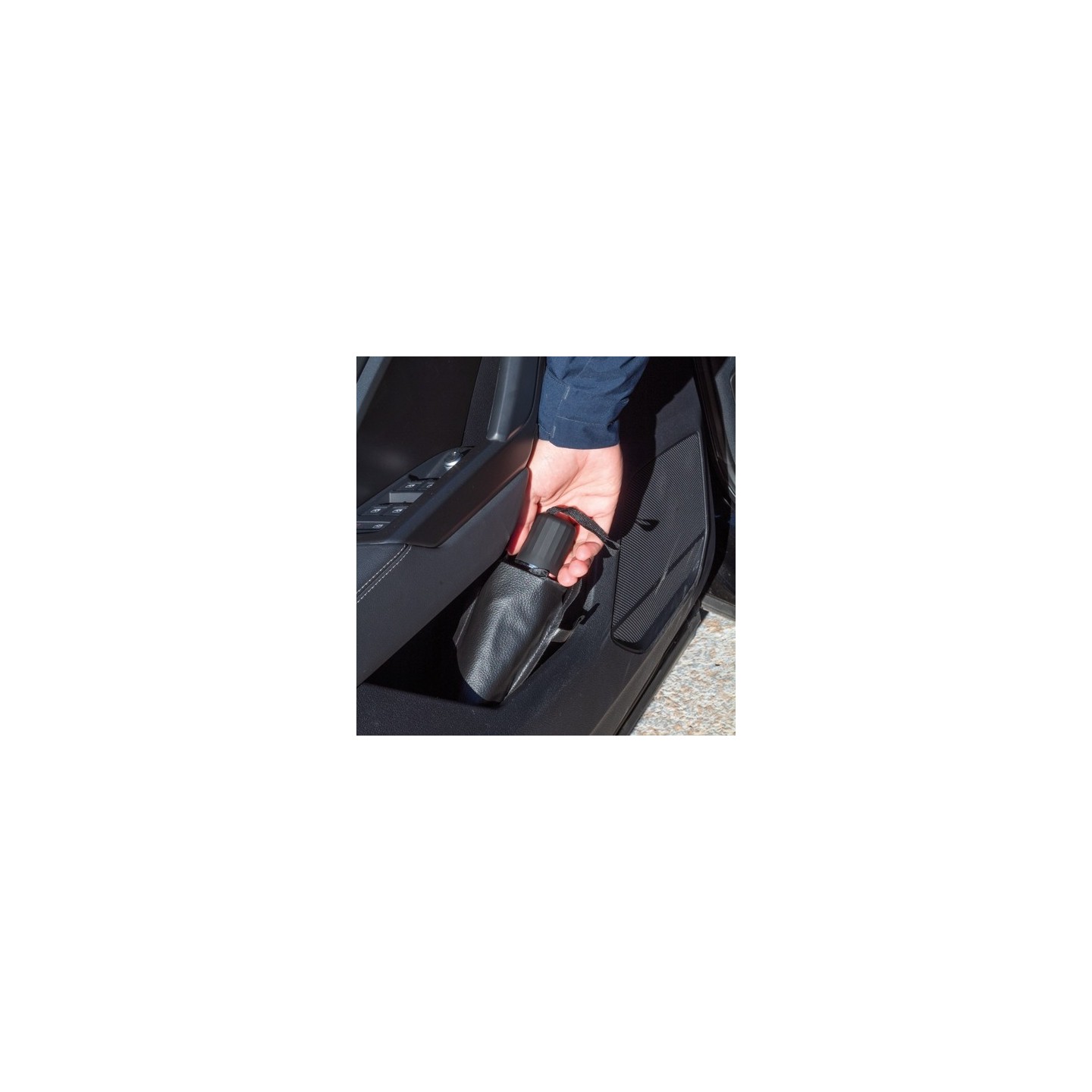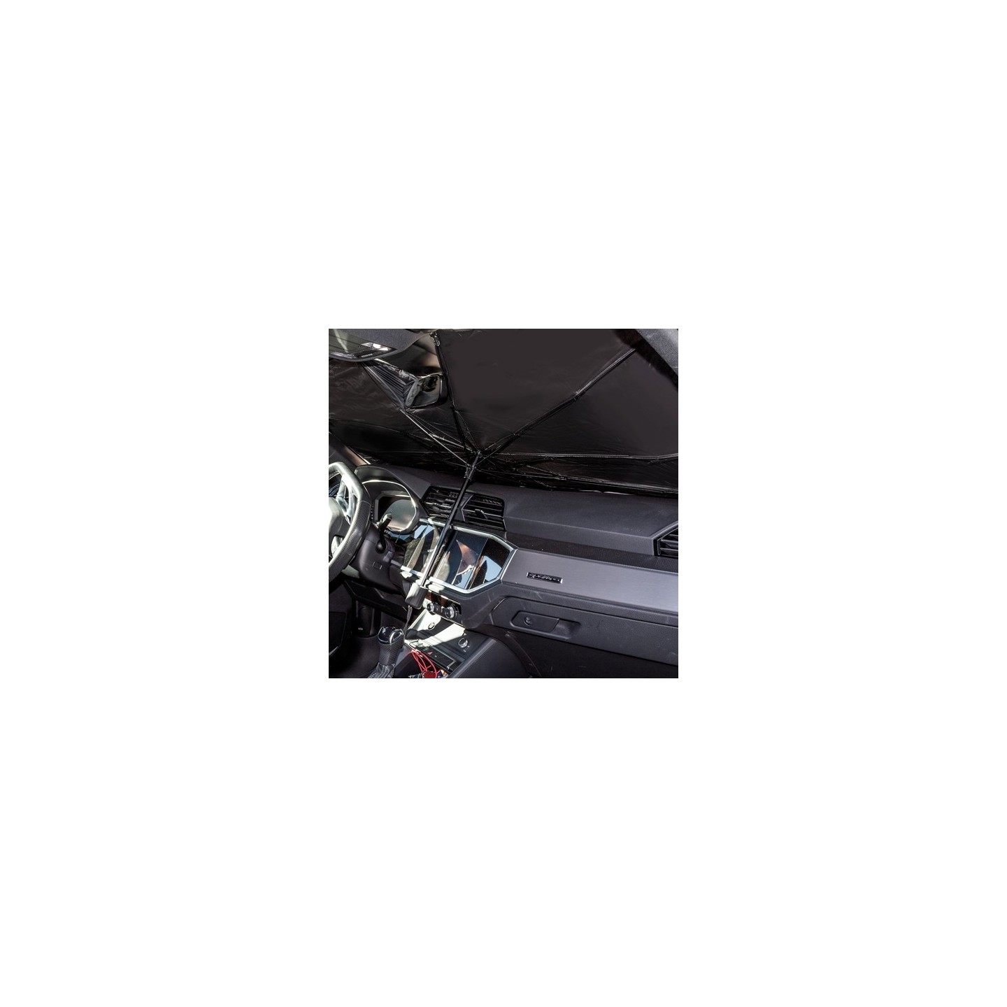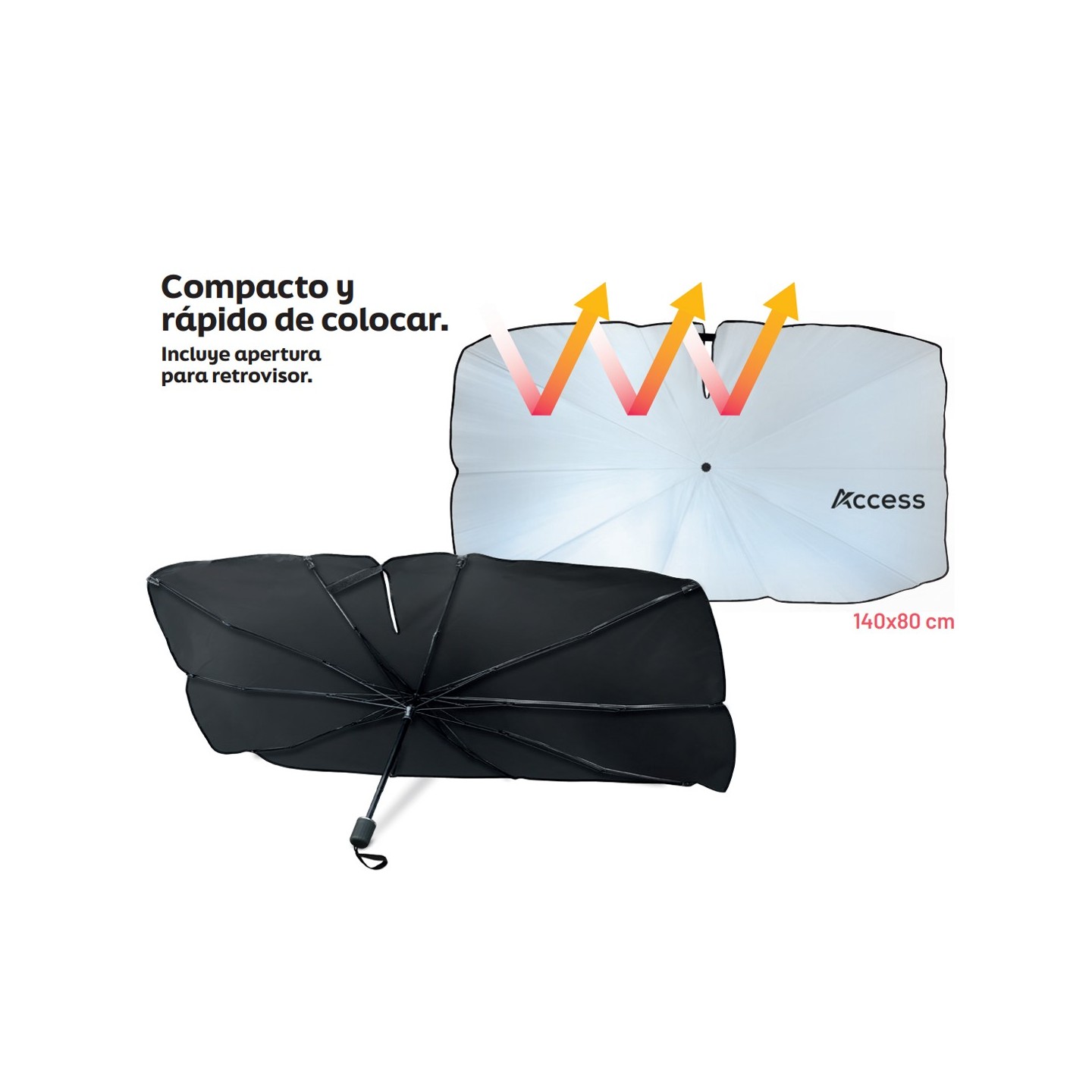 Parasol automático y compacto, fácil de colocar y retirar. Ofrece protección térmica, reduce el calor y mejora el confort del vehículo. Incluye funda PU y apertura para retrovisor.