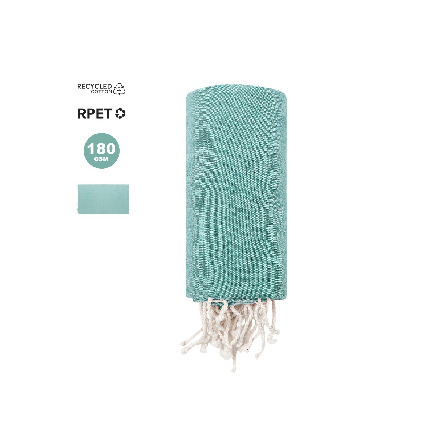 Pareo toalla DIKKY de 90 x 170 cm, fabricado con 80% algodón reciclado y 20% poliéster RPET. Personalizable con logotipo. Ideal para merchandising ecológico.