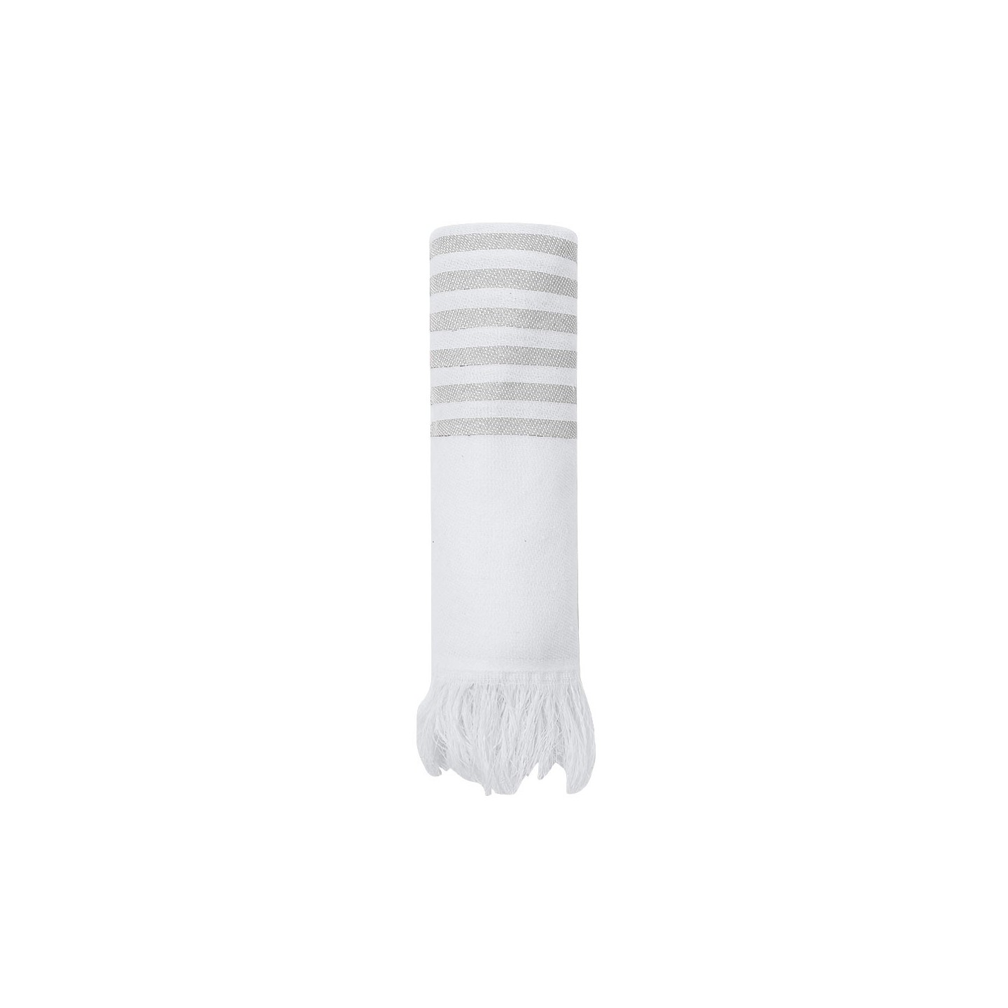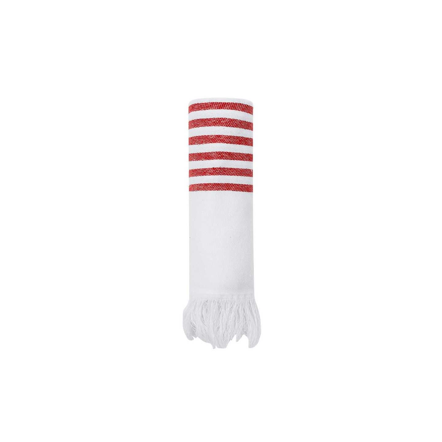 El pareo-toalla TIRLING es una opción ideal para disfrutar del sol y la playa, mientras contribuyes al cuidado del medio ambiente. Confeccionado en una combinación de 70% algodón reciclado y 30% poliéster reciclado SEAQUAL®, este producto no solo te brinda suavidad y comodidad, sino que también cuenta con la garantía de un origen sostenible. El diseño destaca con una base en blanco y rayas de color, adornadas con flecos distinguidos en los extremos, añadiendo un toque de elegancia y frescura.