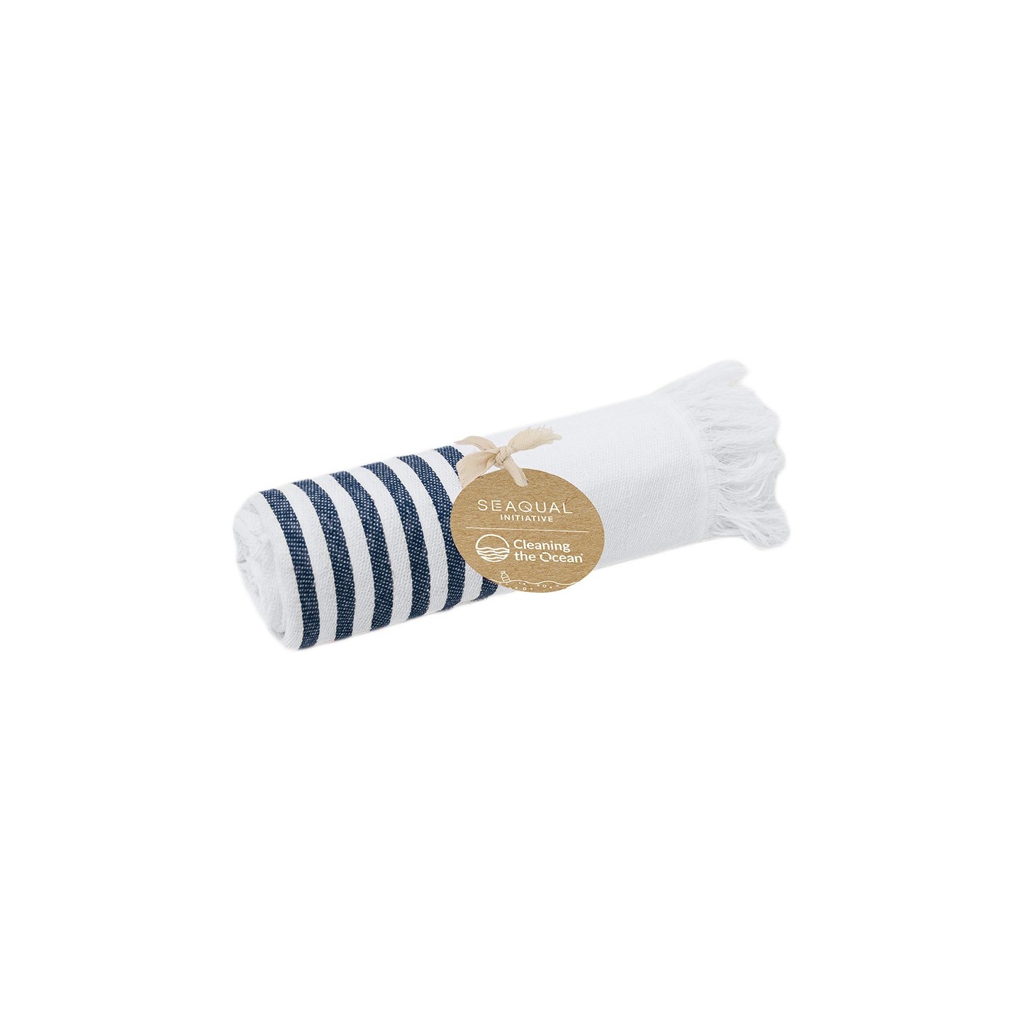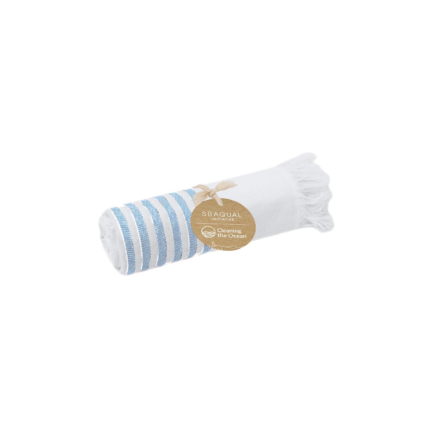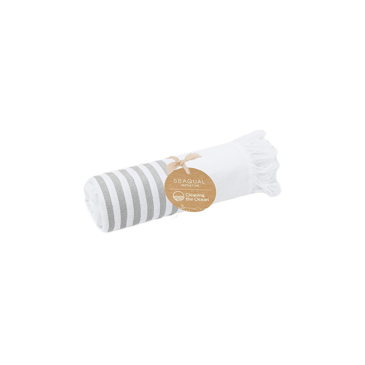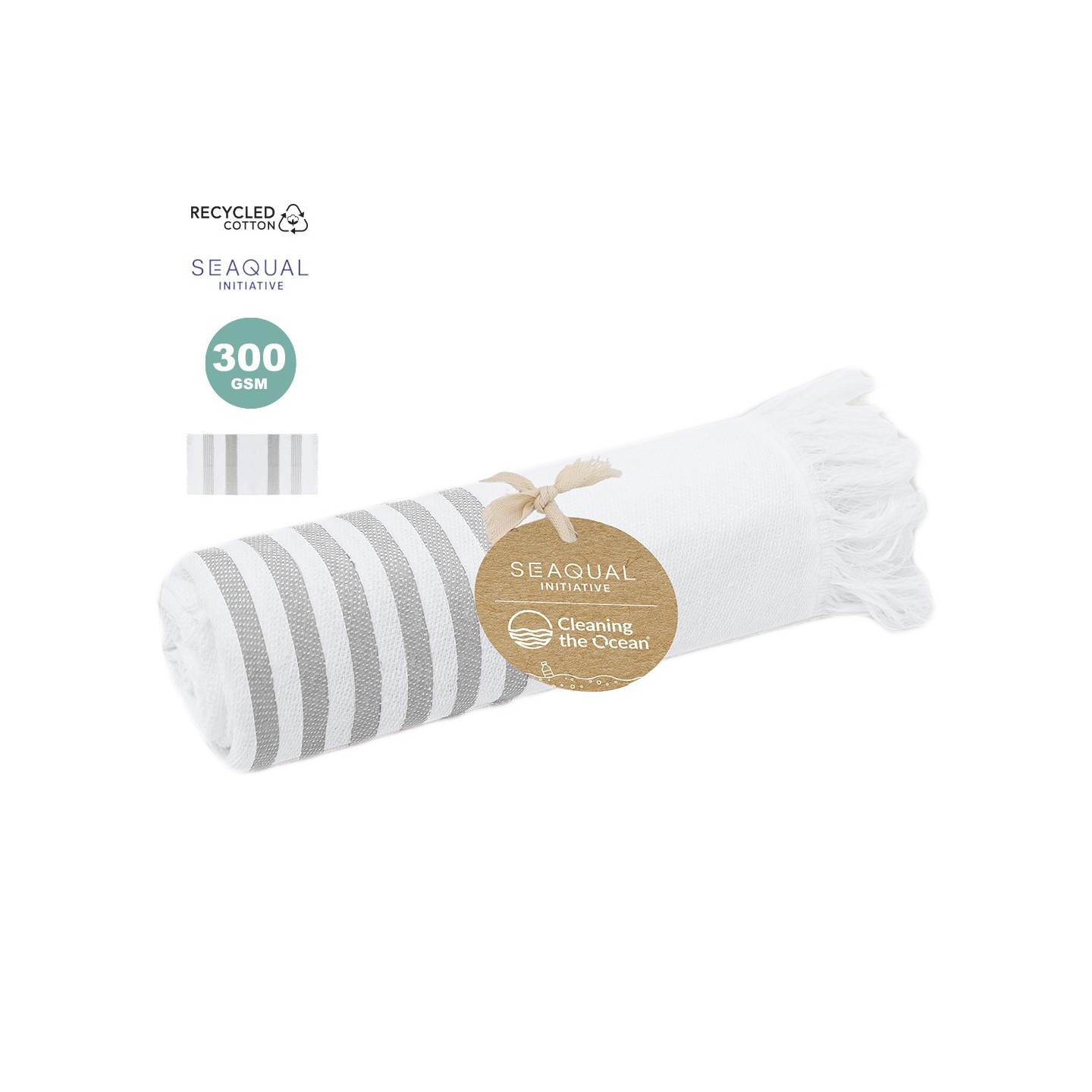 Pareo-toalla TIRLING de 70% algodón reciclado y 30% poliéster SEAQUAL®, con diseño elegante y flecos. Certificado sostenible, personalizable con tu logotipo.