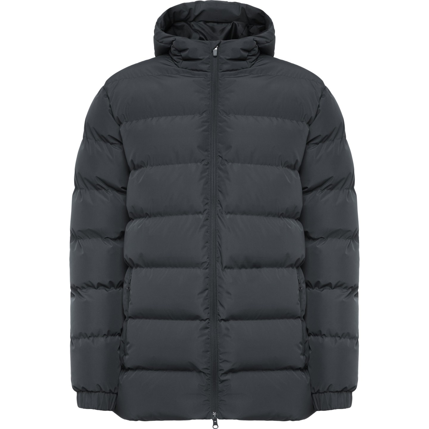 Parka deportiva acolchada unisex con capucha fija, resistente al agua y viento. Ideal como uniforme laboral o regalo promocional con logotipo
