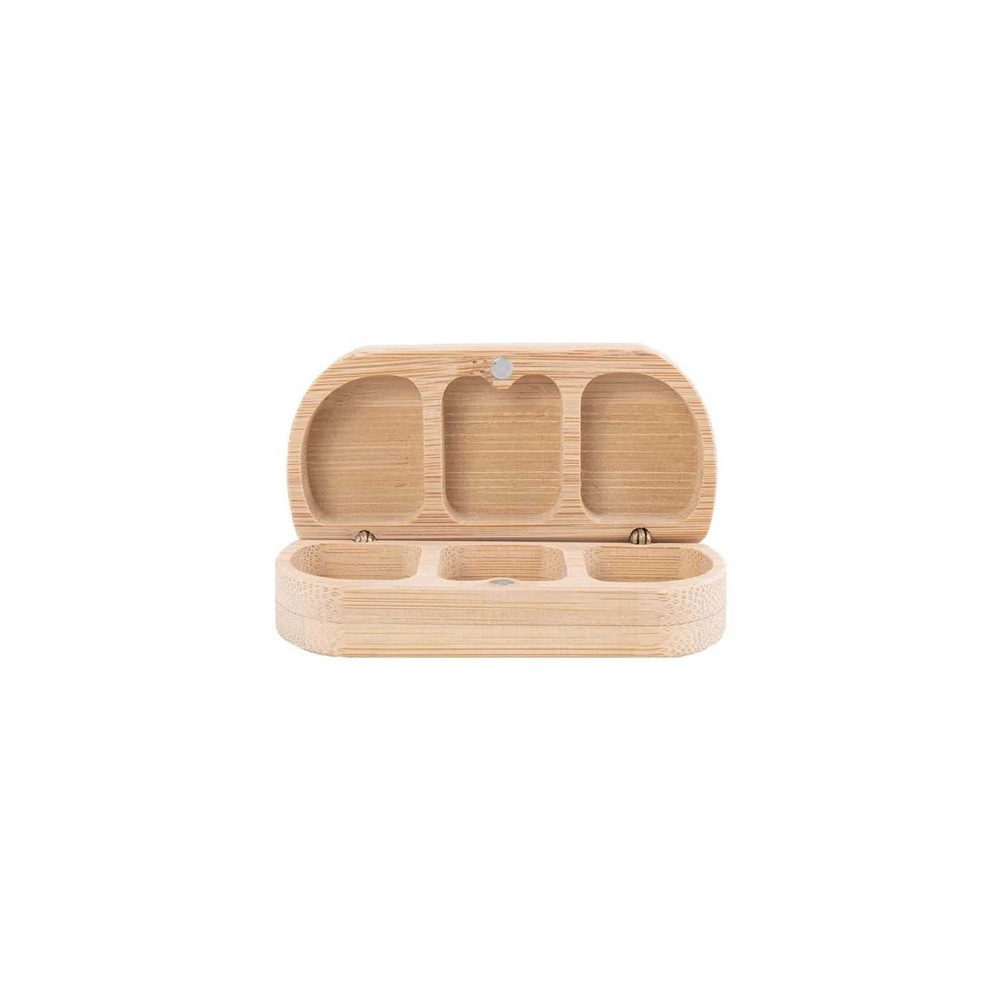Construido con bambú, este pastillero presenta 3 separaciones, proporcionando espacio para organizar tus medicamentos o suplementos. Con medidas de 8 x 2,5 x 4 cm, su diseño compacto es perfecto para llevar en tu bolsillo o bolso.