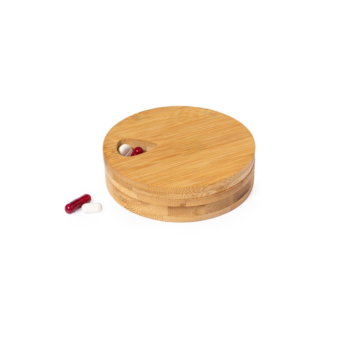 El Pastillero Medlar es compacto y práctico, organizador semanal de bambú. Personalizable con tu logo para promocionar tu marca