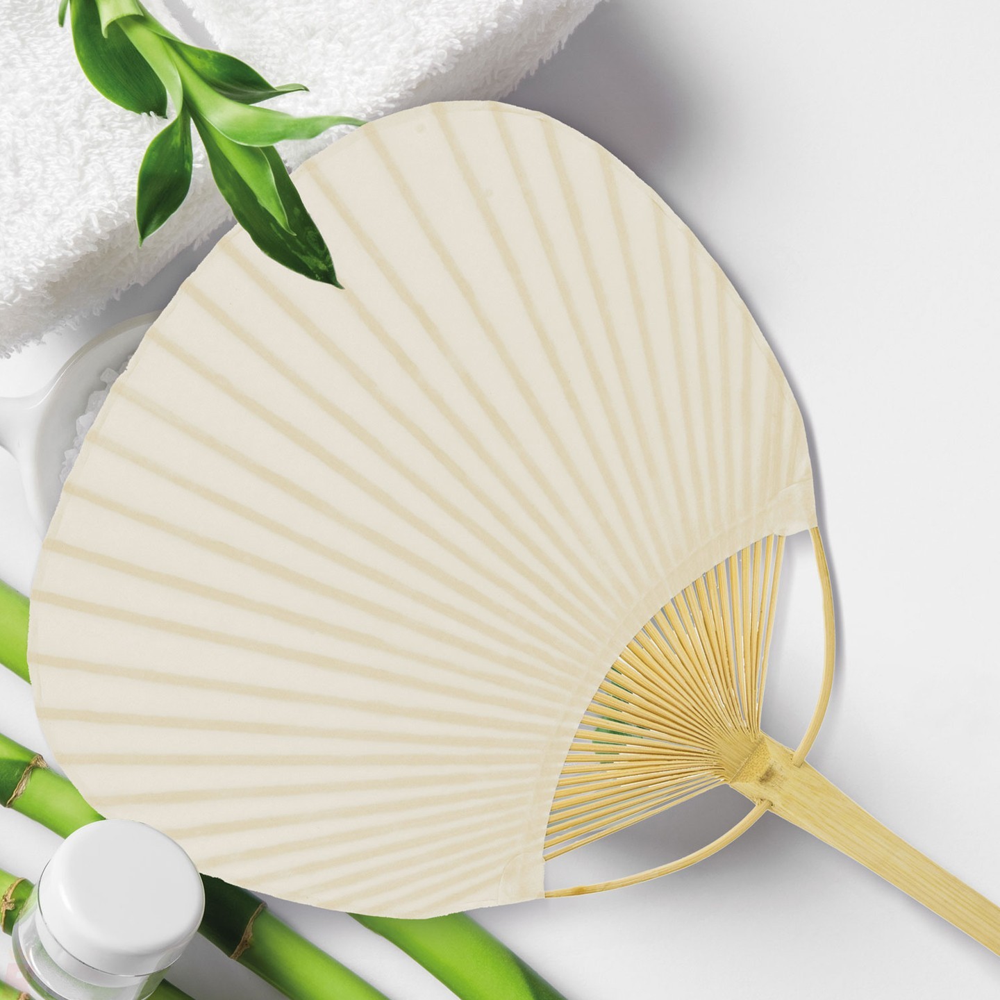 Elegante pay-pay de bambú natural y papel en tonos pasteles, perfecto para añadir un toque exótico y original a tus eventos más especiales
