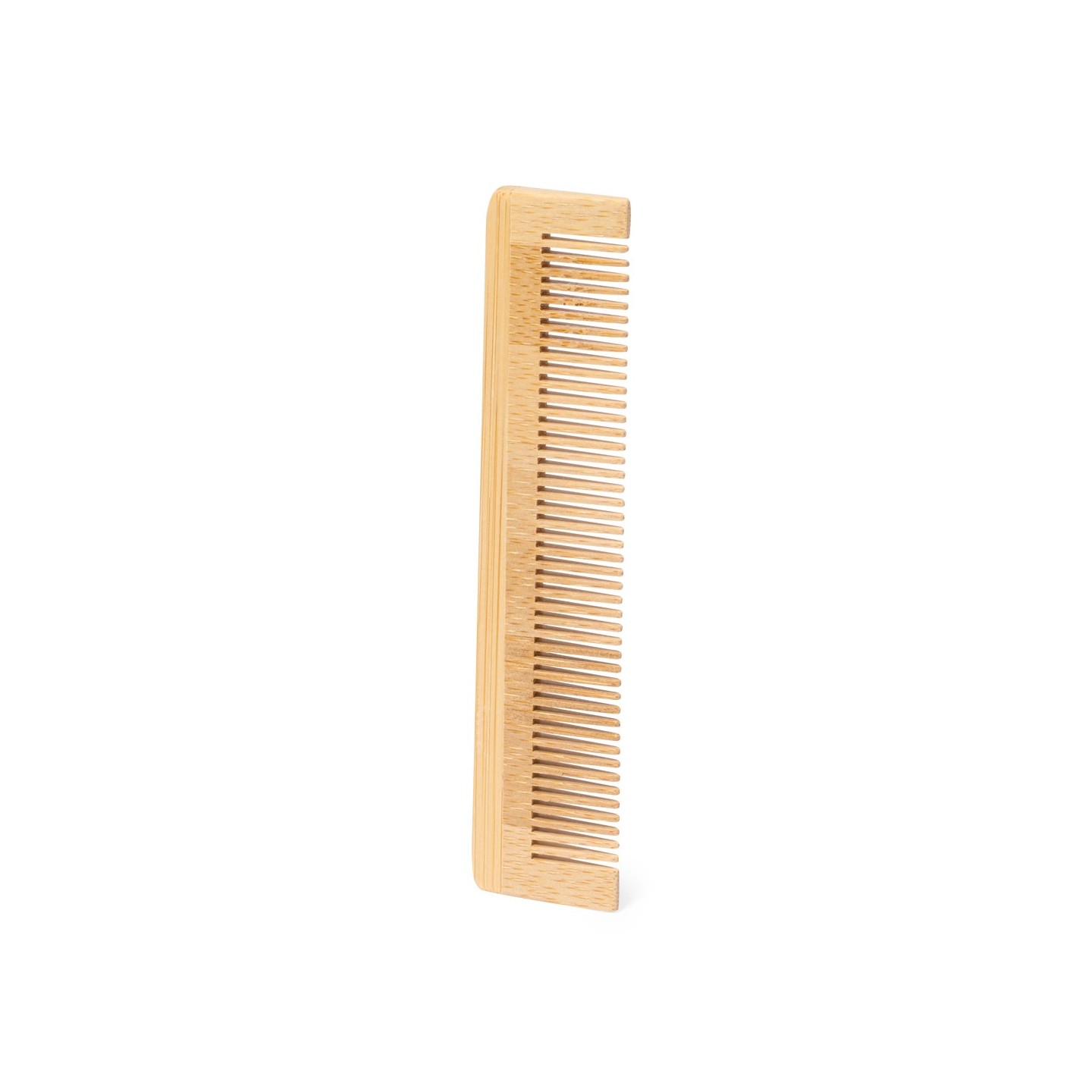 Fabricado en bambú, una materia prima renovable y biodegradable, este peine no solo es una elección eco-friendly, sino también duradera y resistente. El bambú es conocido por su resistencia y capacidad para soportar el uso diario, lo que asegura la longevidad de este peine incluso con un uso frecuente.
