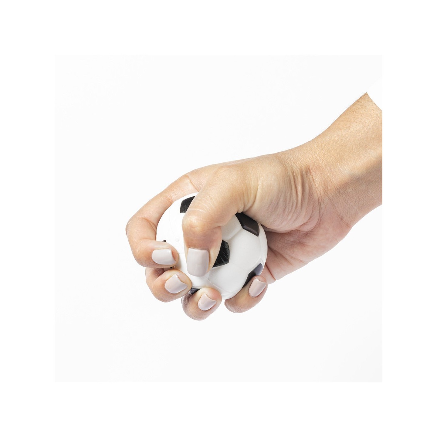 Descubre la Pelota Antiestrés Chaiss con diseño de fútbol y suave cuerpo en PU. Regalo promocional que alivia el estrés y despierta la pasión por el deporte.