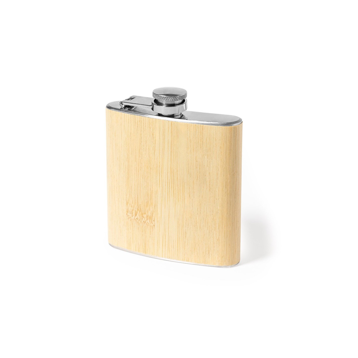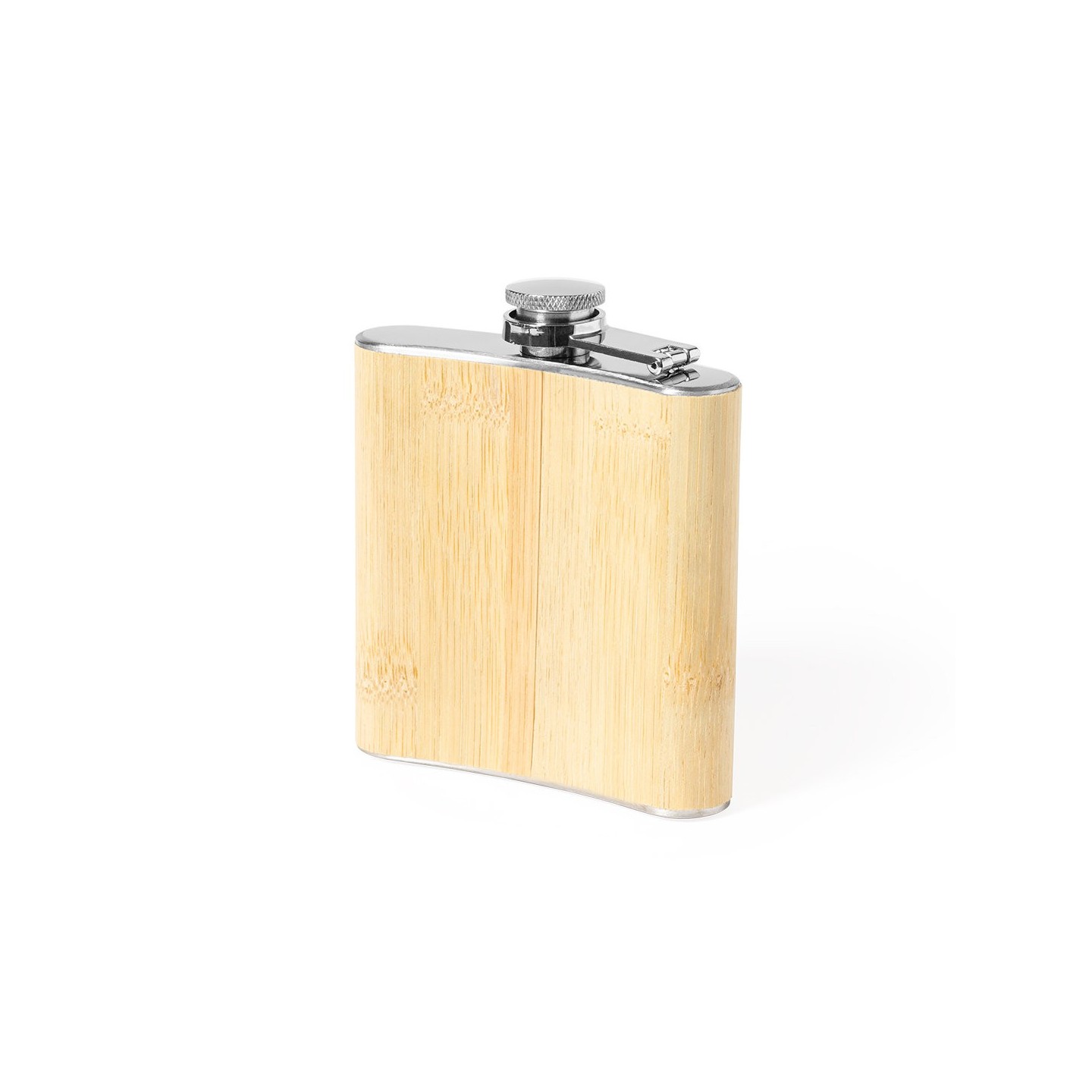 La Petaca Rediston es elegante y funcional, exterior en bambú y tapón de rosca. Ideal para llevar tus bebidas con estilo.
