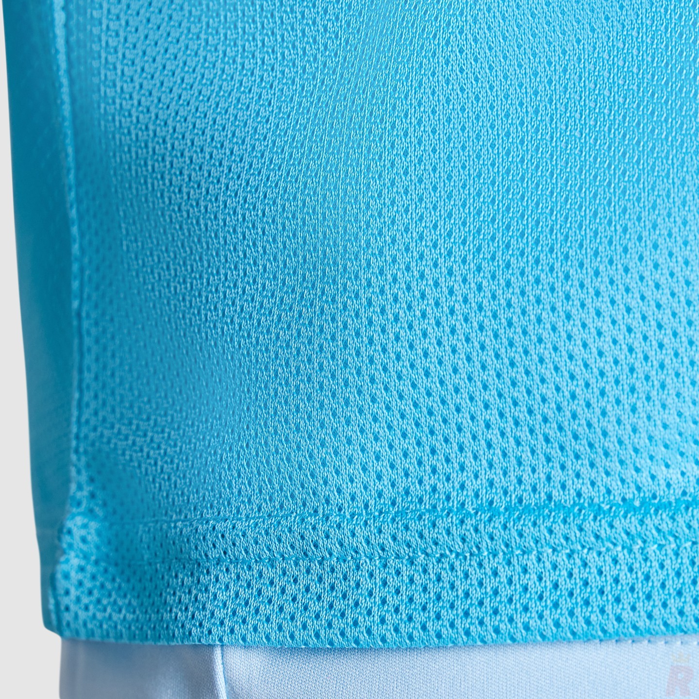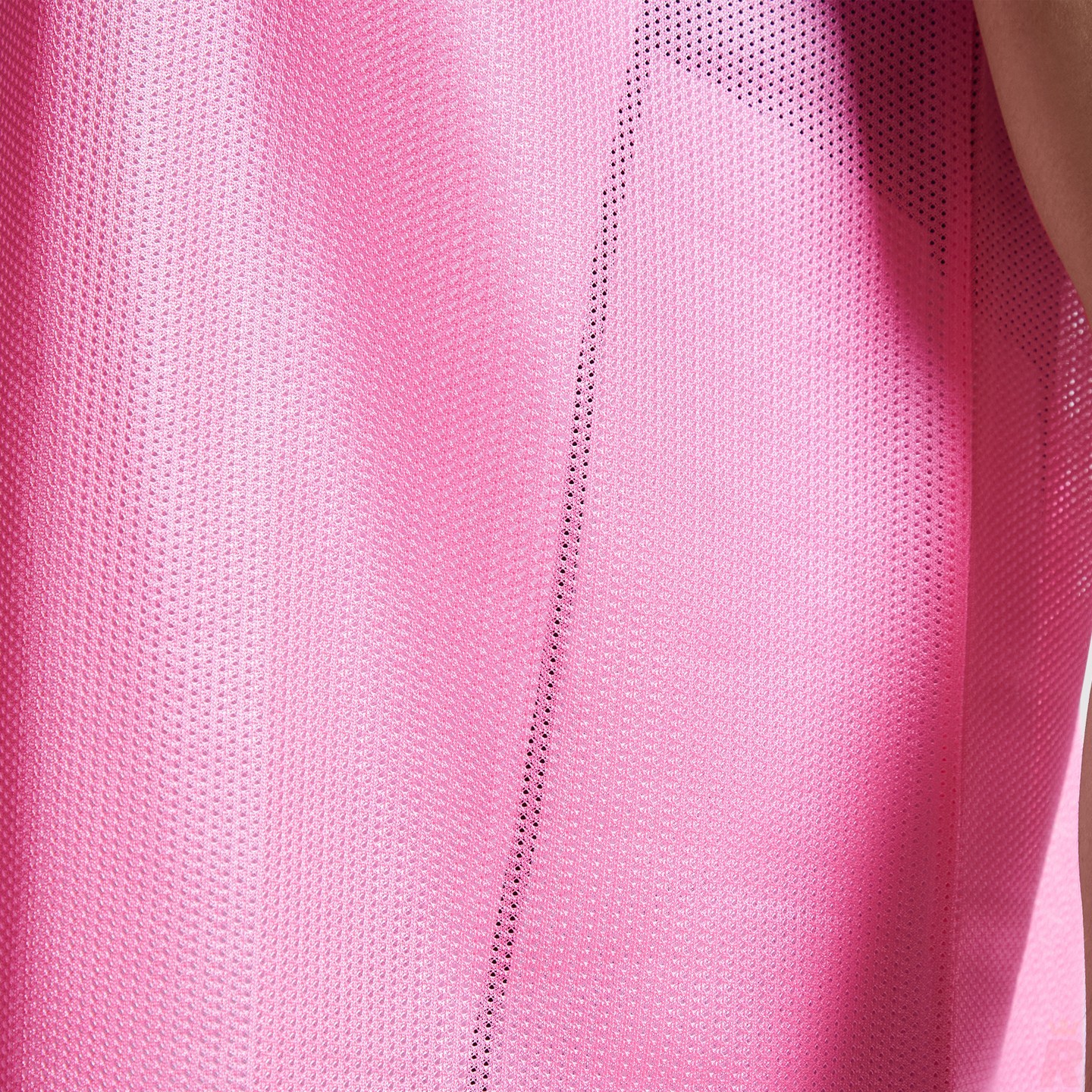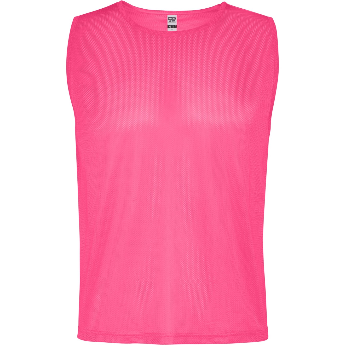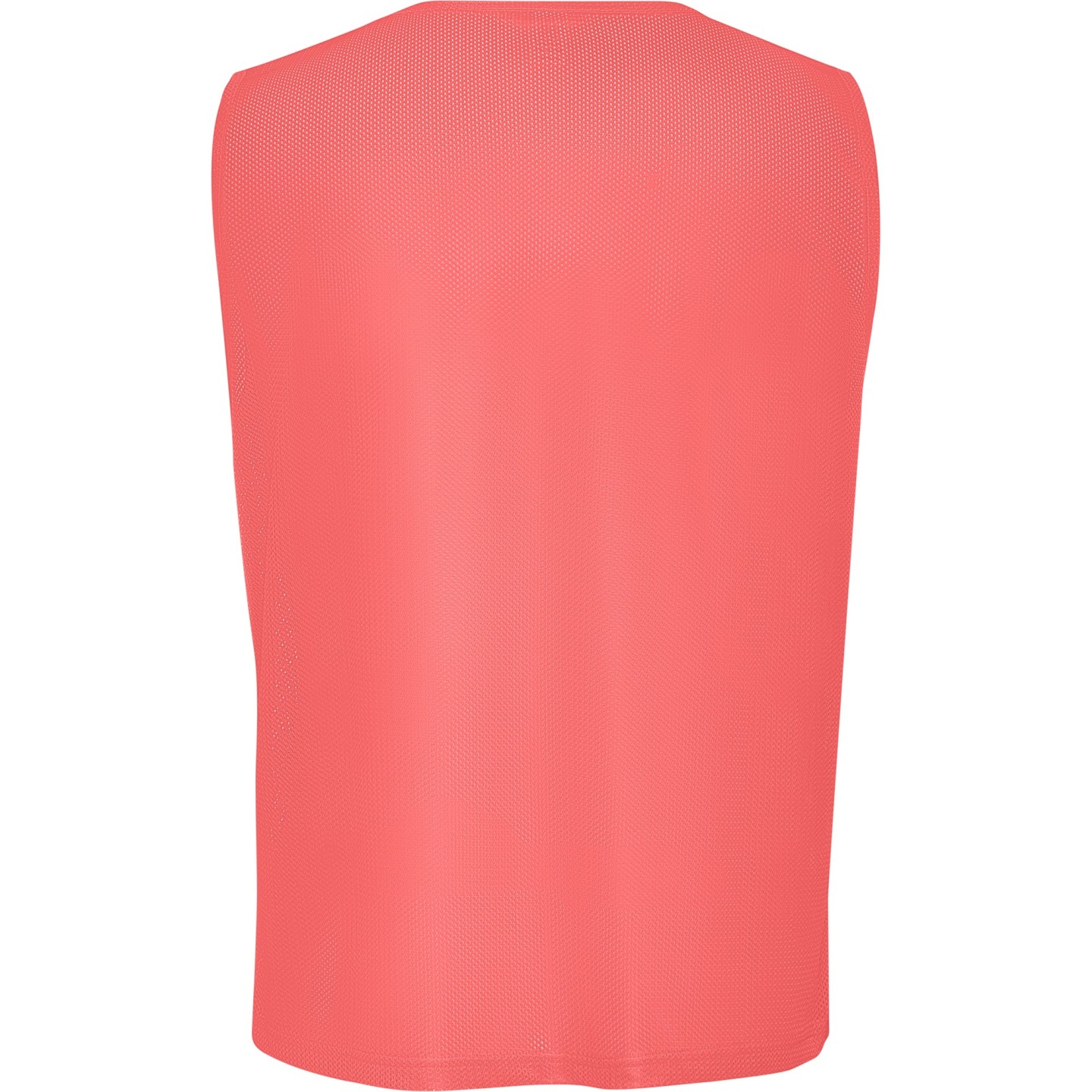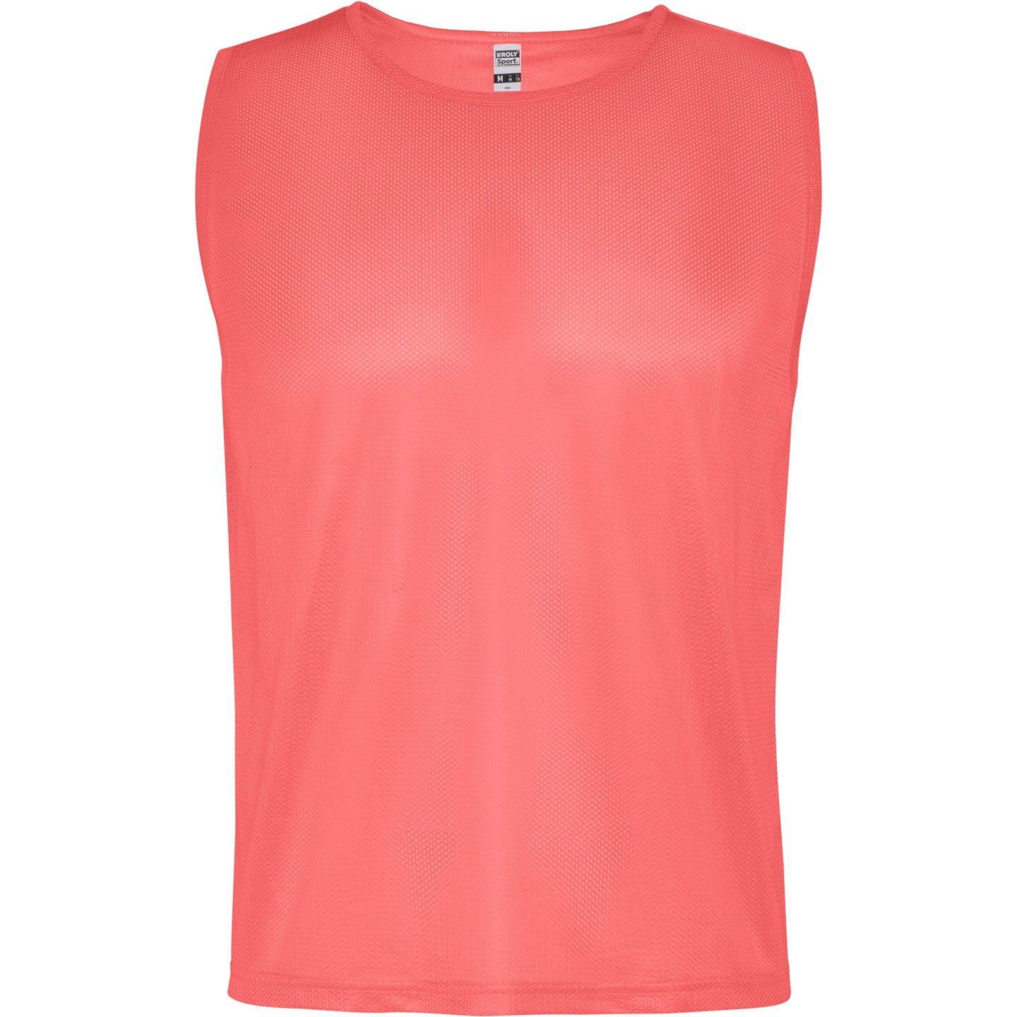 Confeccionado en 100% poliéster mesh de 90 g/m² de gramaje, este peto ofrece un tejido técnico microperforado que garantiza una transpiración óptima incluso durante sesiones deportivas intensas. El acabado incluye vivos del mismo tejido en cuello redondo y sisas, que proporcionan uniformidad estética y mayor resistencia al uso continuo. Además, incorpora doble pespunte en el bajo para una mayor durabilidad.