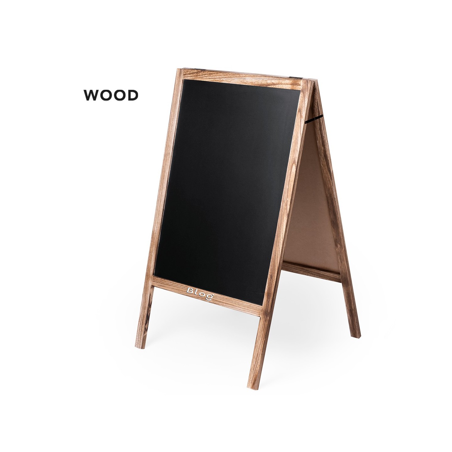 Pizarra Leward de madera, plegable y versátil, ideal para presentaciones. Personalizable con tu logotipo.