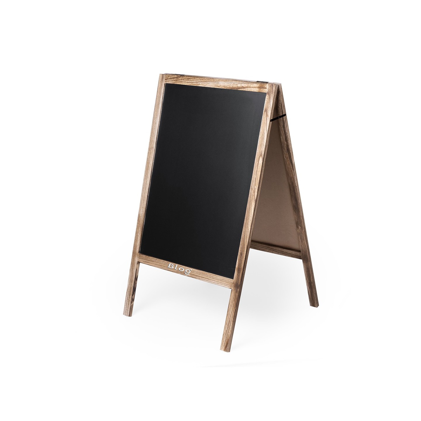 La pizarra Leward es una opción versátil y práctica para tu negocio. Fabricada en madera, ofrece un diseño adaptable a cualquier entorno y es fácil de transportar gracias a su forma plegable.