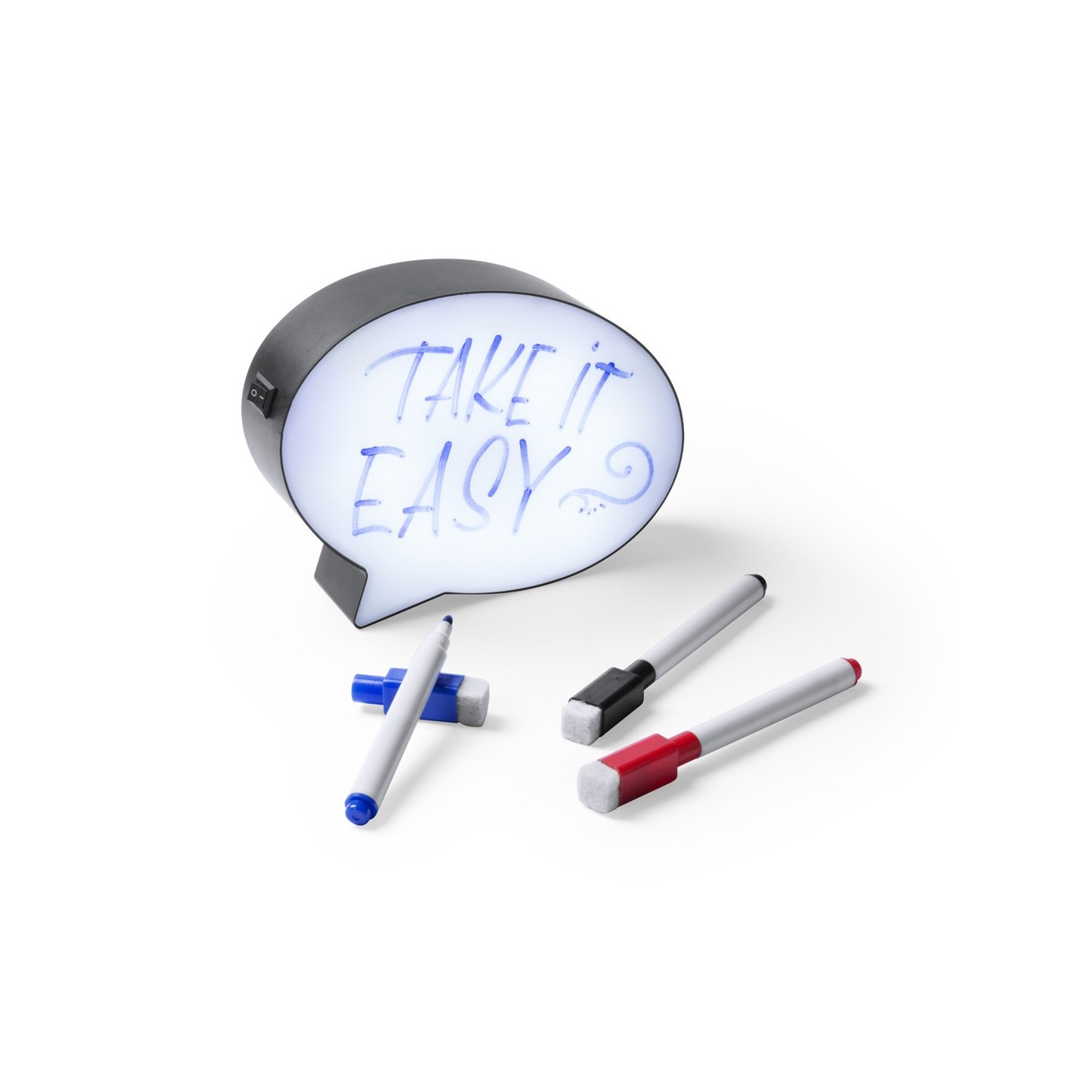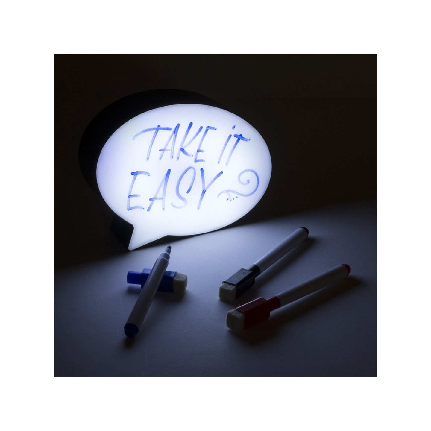La Pizarra Mensaje Nathan es una divertida pizarra bocadillo perfecta para dejar mensajes originales. Su interior está iluminado por 8 LEDs, que le dan un toque especial y llamativo.