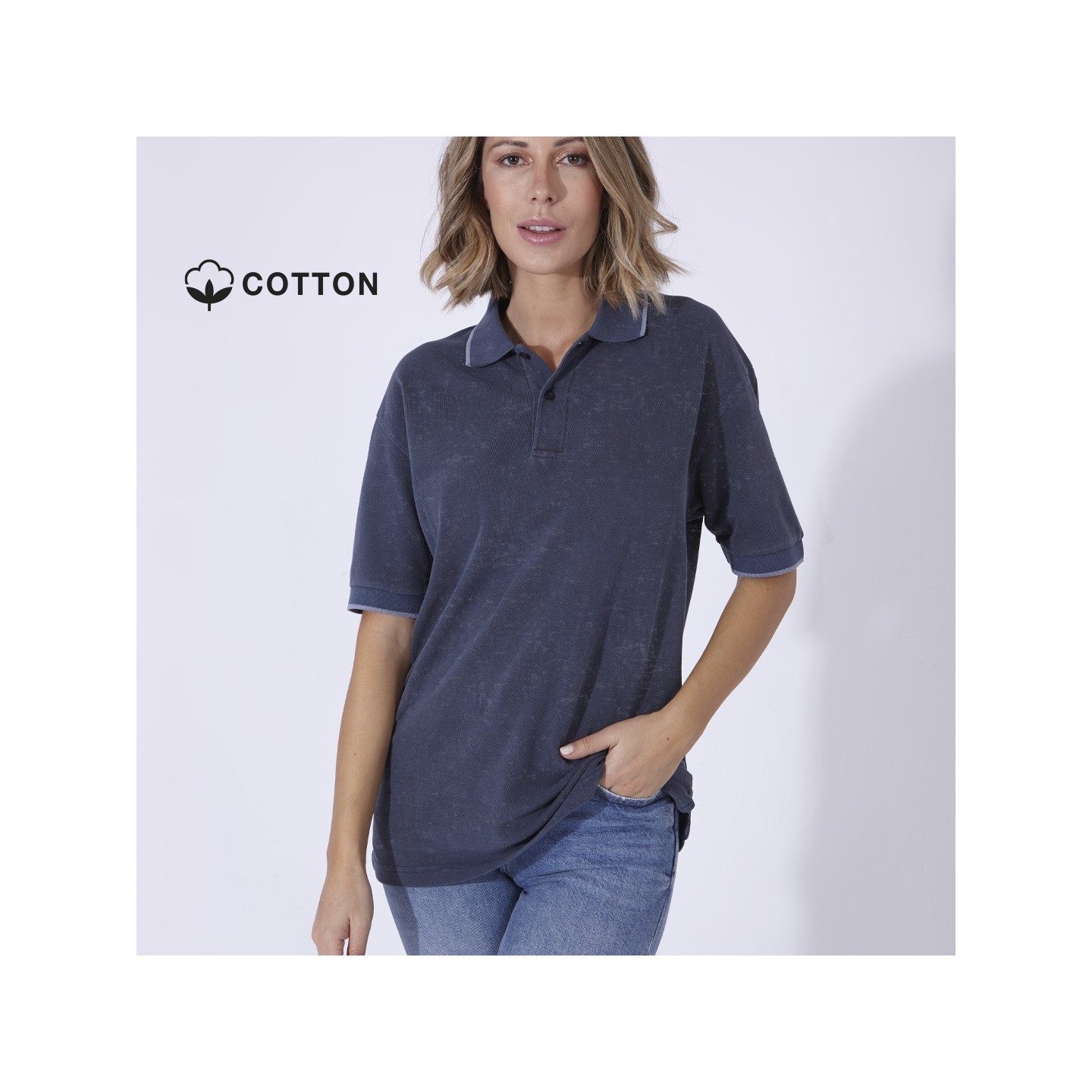 El Polo Adulto Ken es de un estilo moderno con efecto lavado jeans. Confeccionado en algodón suave y resistente. Detalles contrastantes. Personalizable.
