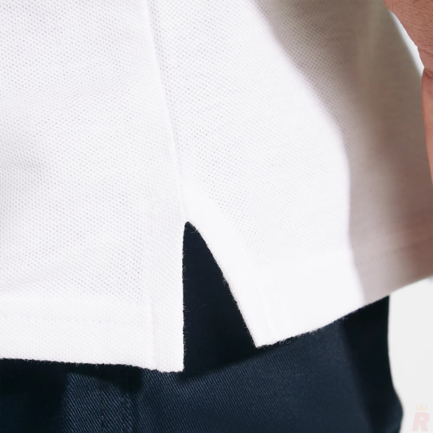 Polo de trabajo para hombre 100% algodón piqué, ideal para la industria alimentaria. Cuello en canalé, cierre con velcro, etiqueta removible y aperturas laterales