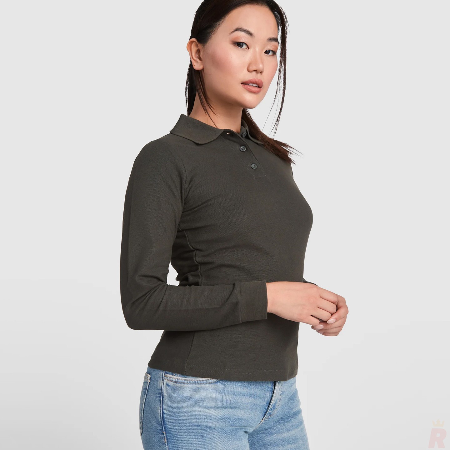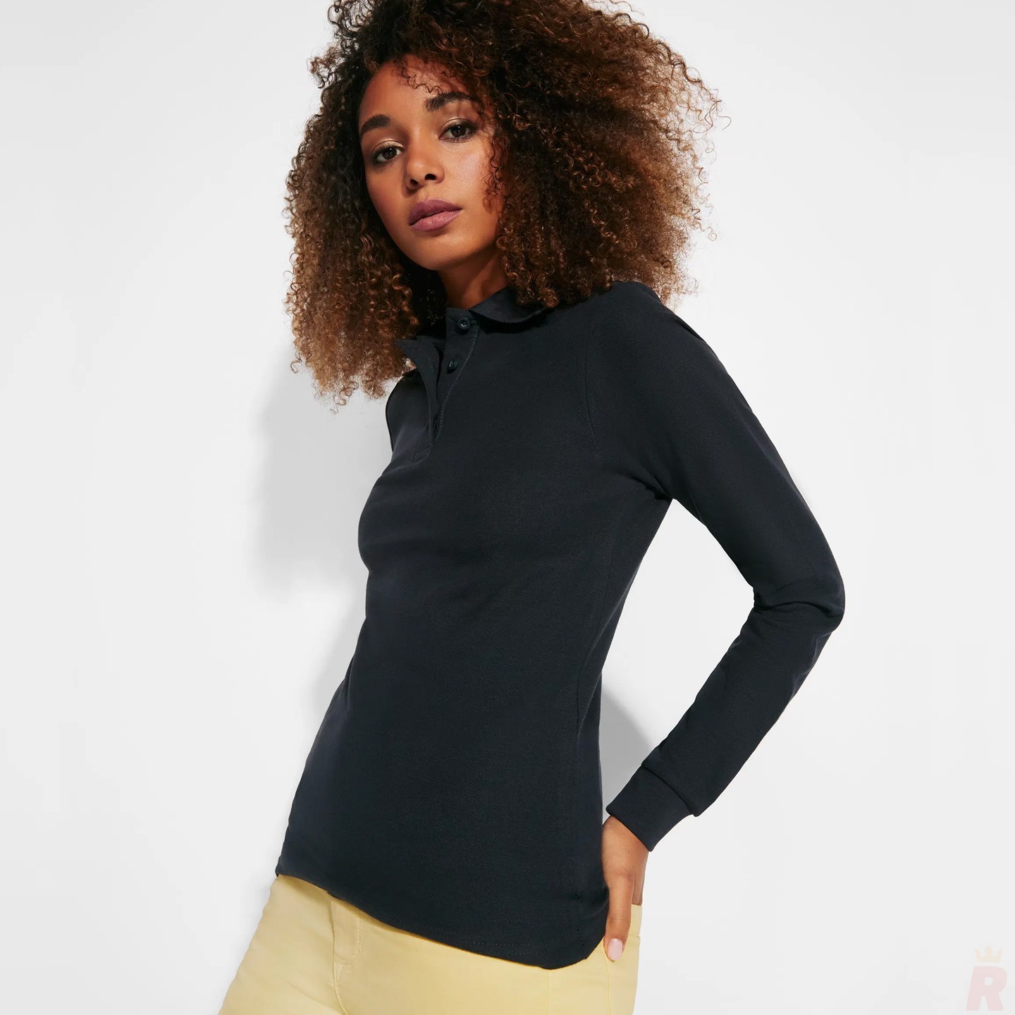Polo de mujer entallado y cómodo de manga larga en piqué 100% algodón, ideal para uniformes y promociones. Personalizable con logotipo de empresa