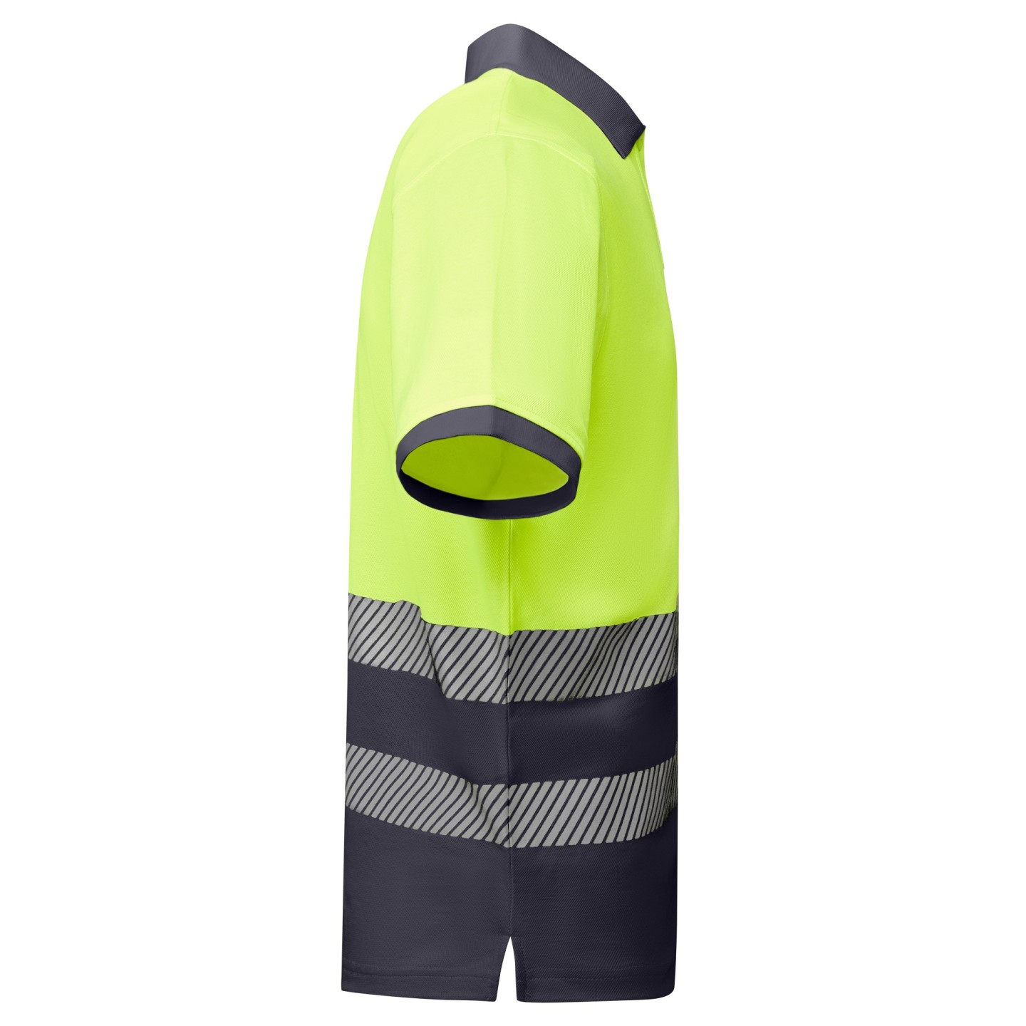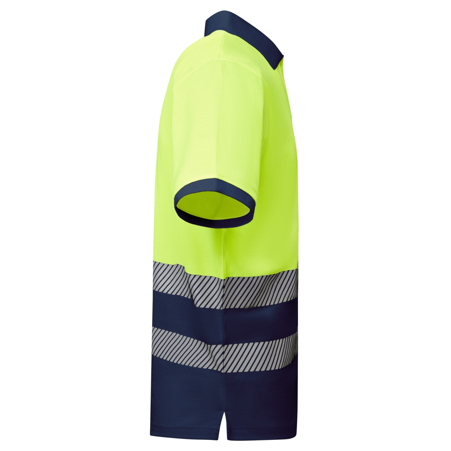 Polo técnico de alta visibilidad para hombre, transpirable, con cintas reflectantes y cuello canalé. Ideal para personalizar con logotipo de empresa