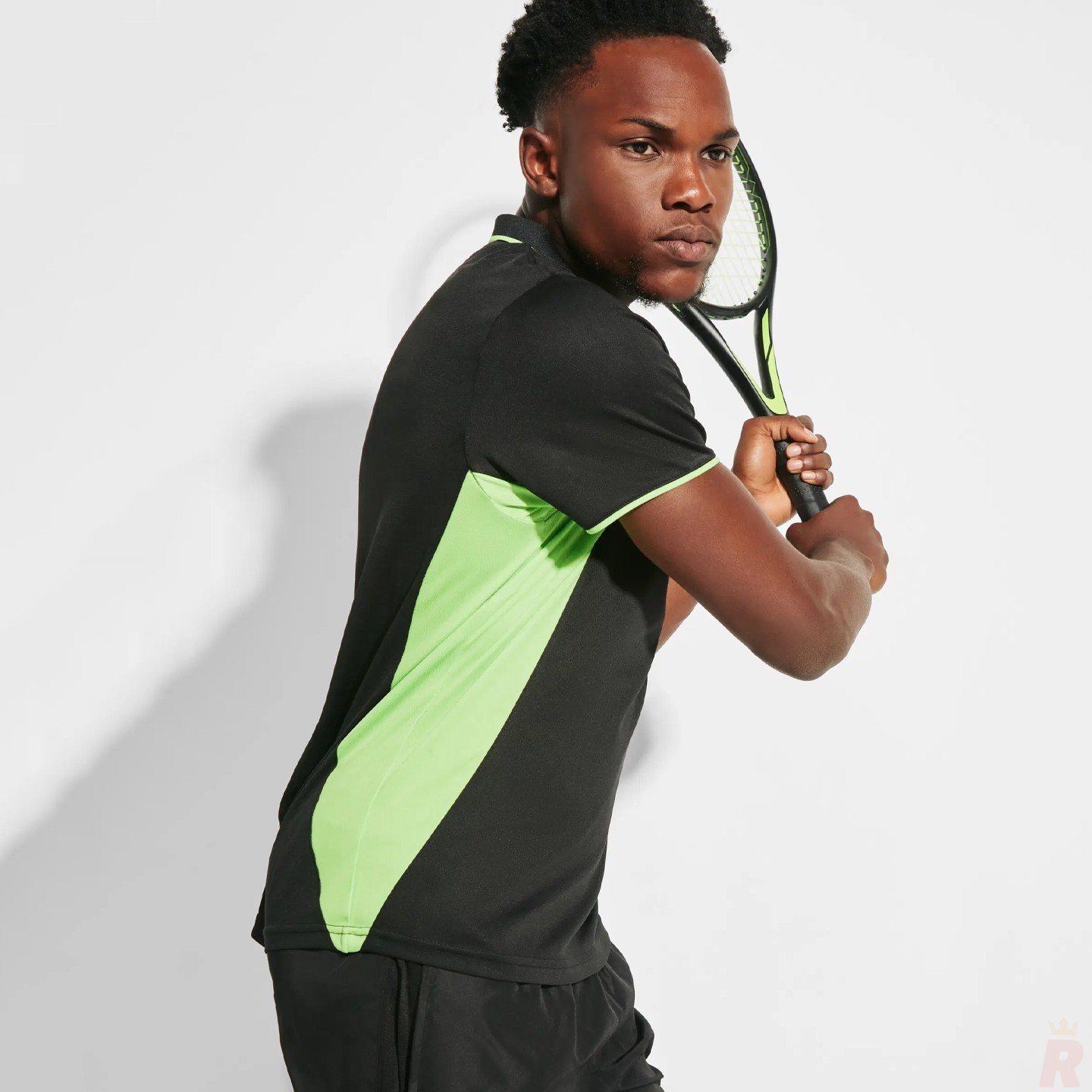 Polo técnico de hombre transpirable, ideal para trabajo o deporte. Diseño bicolor con detalles en contraste. Personalizable con logotipo de empresa