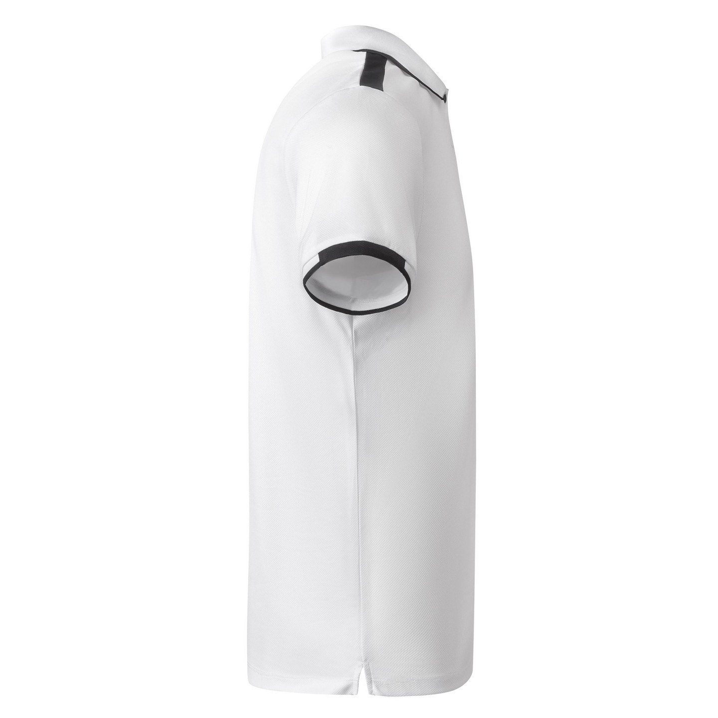 Su gramaje de 140 g/m² (150 g/m² en combinación Blanco/Negro) garantiza una estructura equilibrada entre resistencia y frescura. El diseño incorpora cuello y ribetes en las mangas en canalé 1x1, con una elegante línea en contraste que aporta un toque moderno y deportivo. Cuenta además con cubrecosturas reforzado en el interior del cuello para mayor durabilidad y comodidad.