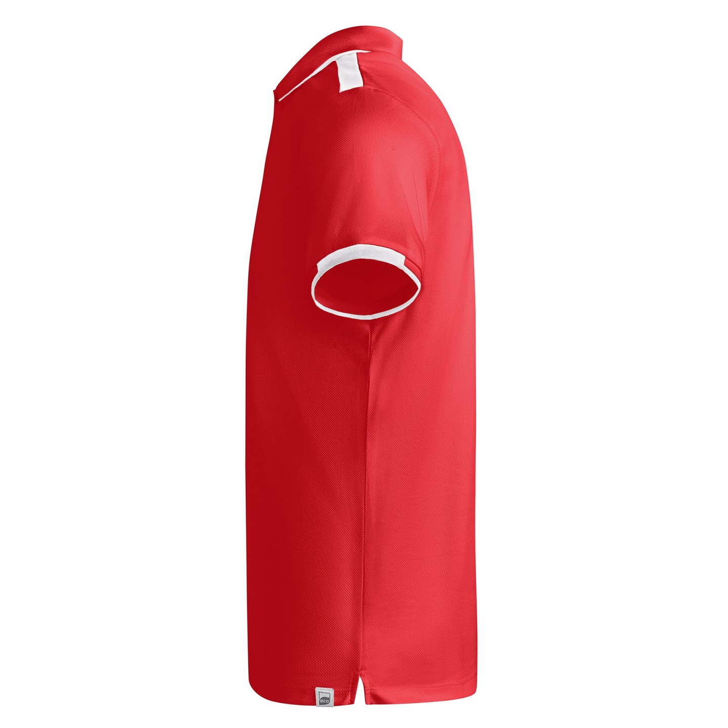 La tapeta frontal con dos botones automáticos ocultos mantiene un estilo limpio y funcional, mientras que las piezas de hombros y detalles en color a contraste realzan la silueta y aportan dinamismo visual. Presenta aperturas laterales en el bajo para un ajuste más cómodo al moverse, y una etiqueta exterior distintiva ECO que refuerza su compromiso sostenible. Ideal como uniforme corporativo, vestimenta promocional o prenda deportiva personalizada con logotipo.