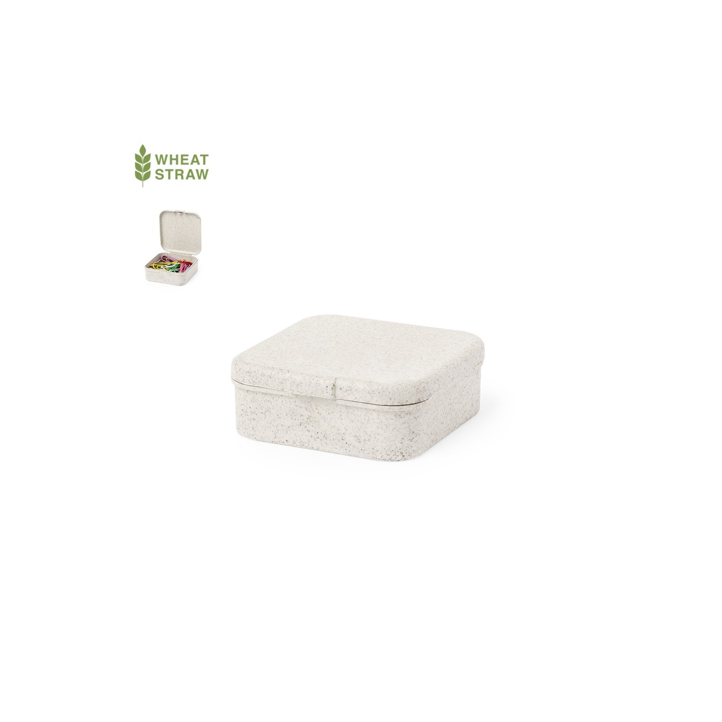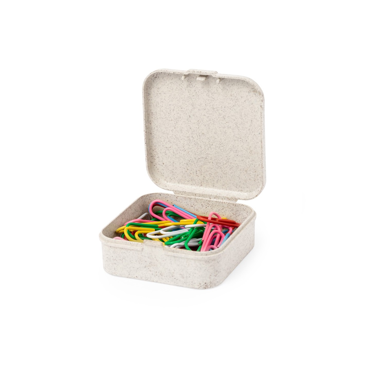 El Portaclips Andrus es práctico y sostenible en caña de trigo. Con cierre a presión y 50 clips. Personalizable para tu marca.