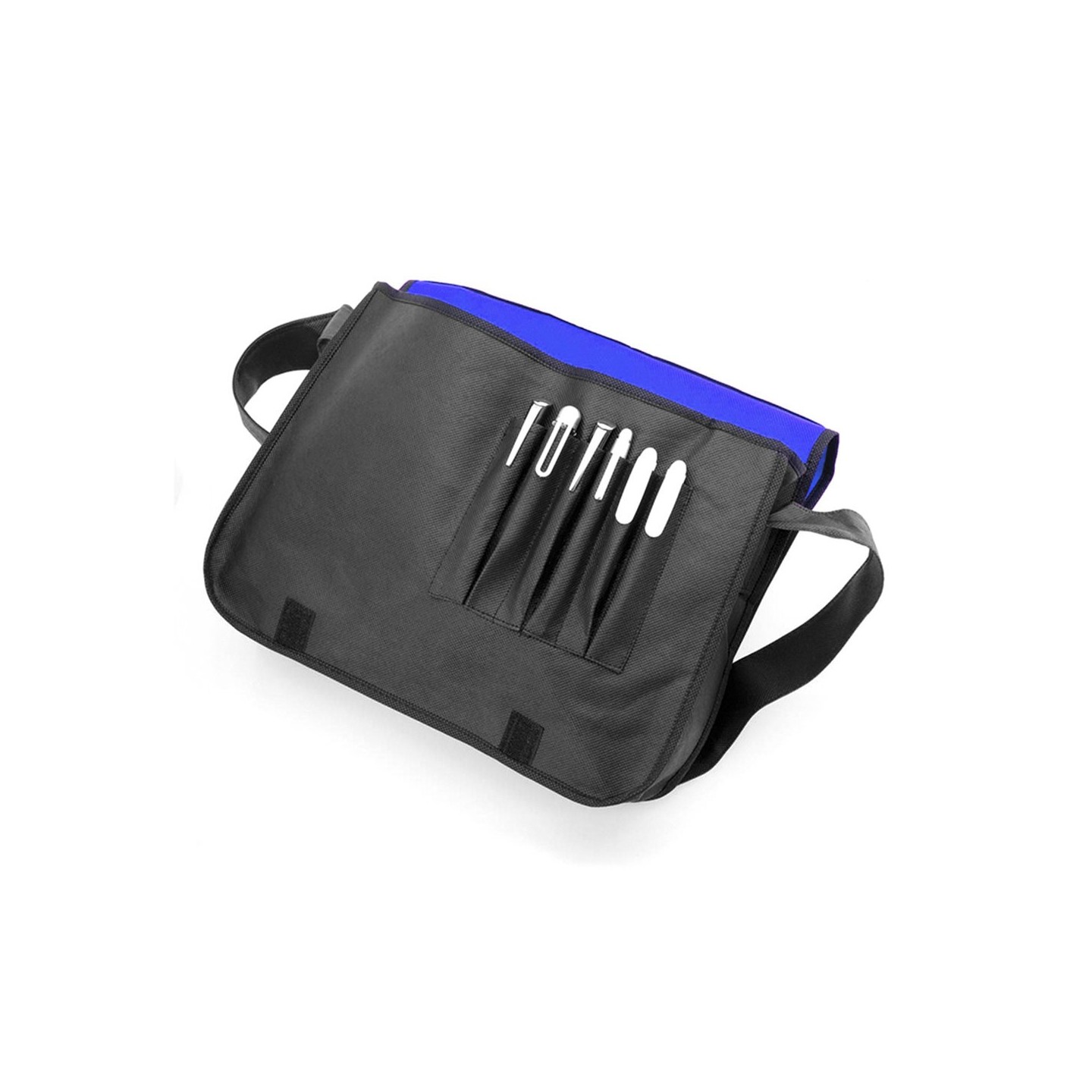 El portadocumentos Bernice es un elegante y práctico accesorio para llevar tus documentos organizados. Fabricado con resistente non-woven y con una solapa de cierre de velcro, es ideal para transportar tus documentos de trabajo o personales de forma segura. Además, cuenta con compartimentos interiores para guardar bolígrafos, asegurando que siempre tengas uno a mano cuando lo necesites. Su elegante ribete en color negro le da un toque sofisticado y profesional. El portadocumentos Bernice es una excelente opción para regalar a empleados, estudiantes o para uso personal.