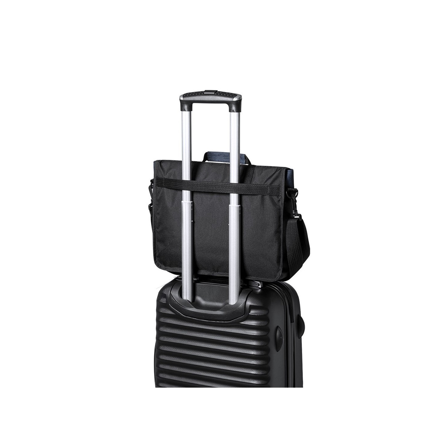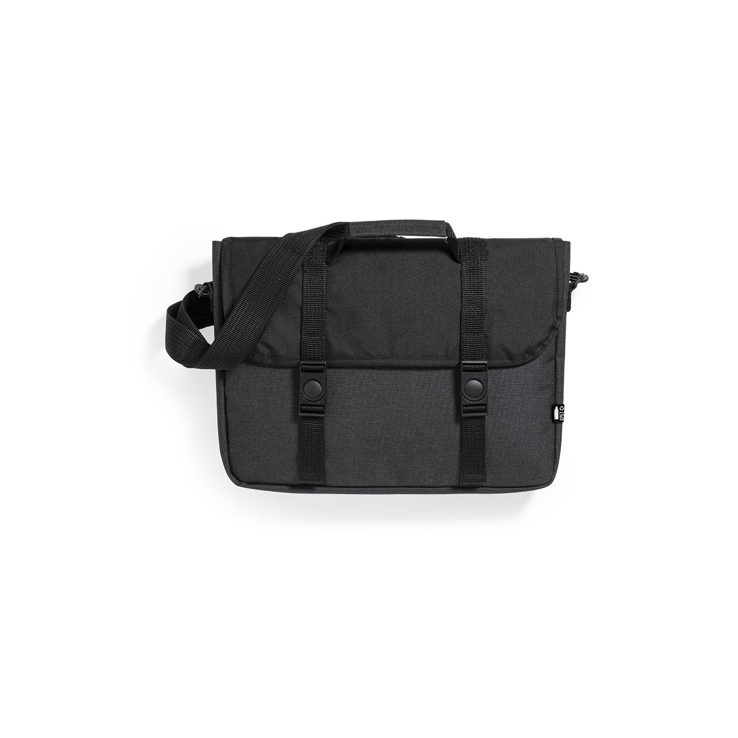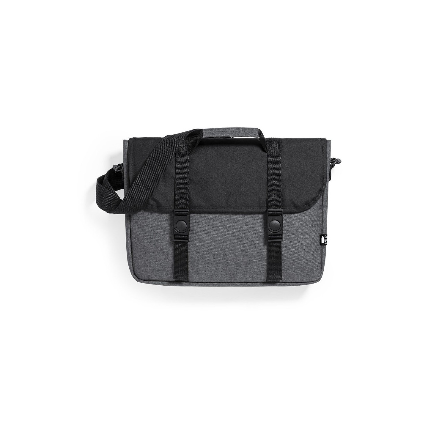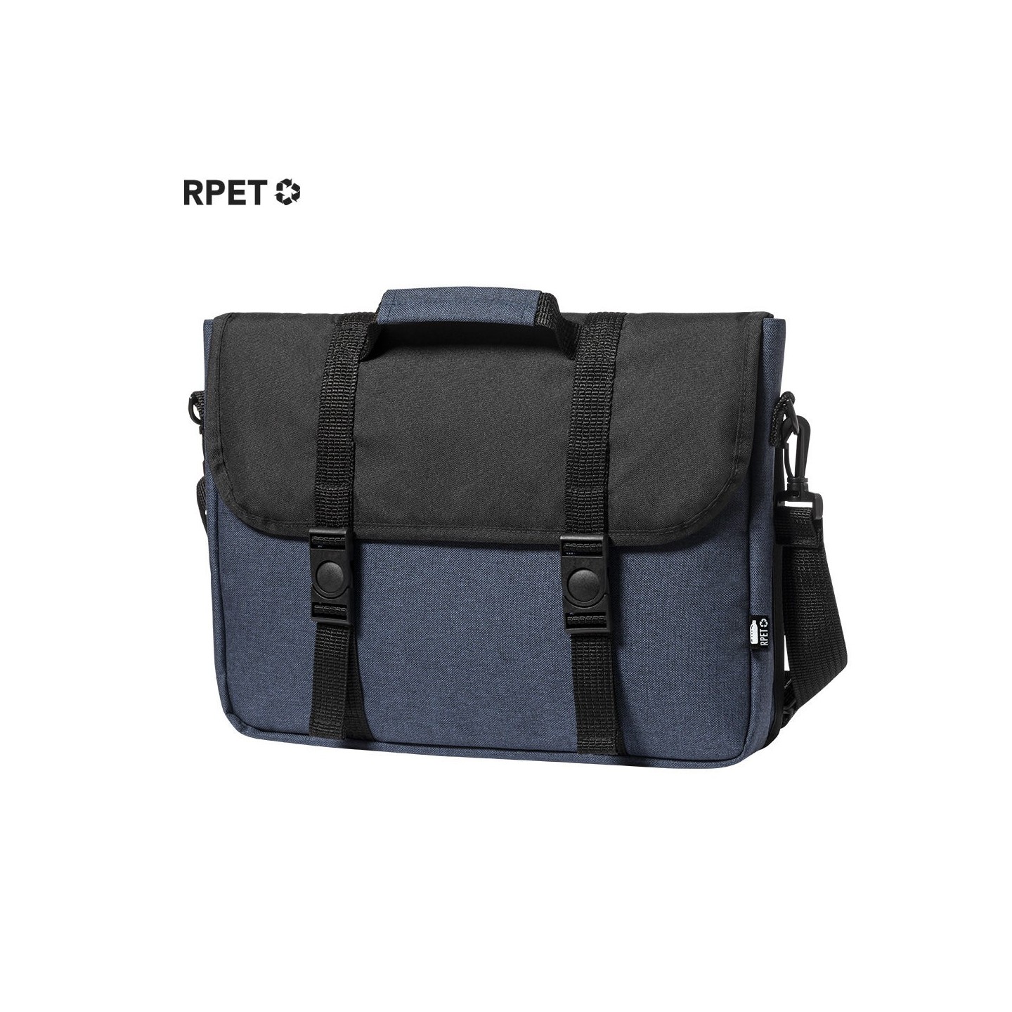 El portadocumentos Derek es un producto eco-tendencia elaborado con poliéster 600D RPET reciclado y libre de PVC. Con acolchado, bolsillo principal con tiras de cierre de hebilla, bolsillo interior de cierre de cremallera, cinta bandolera ajustable para hombro y asa de transporte reforzada. Resistencia hasta 7kg y distintivo RPET en etiqueta exterior.