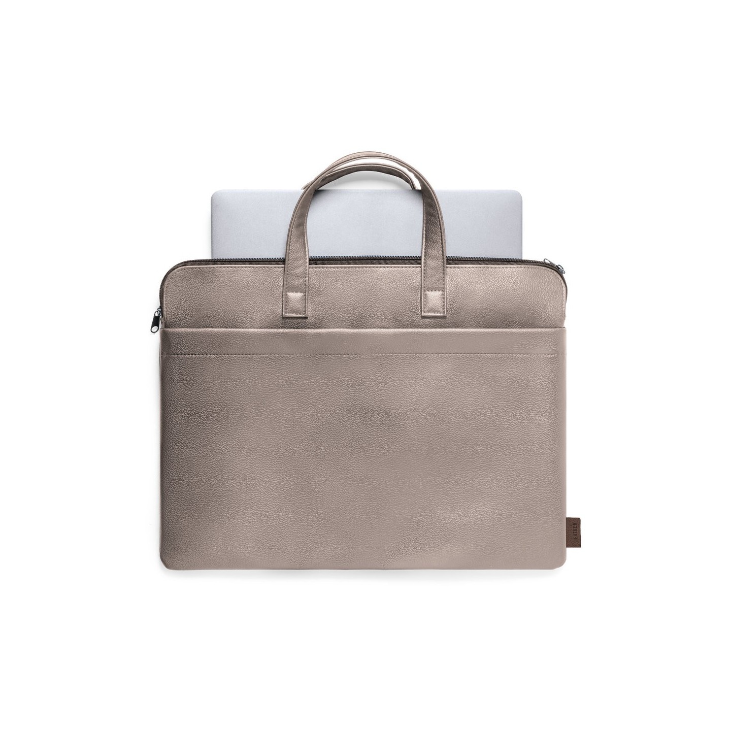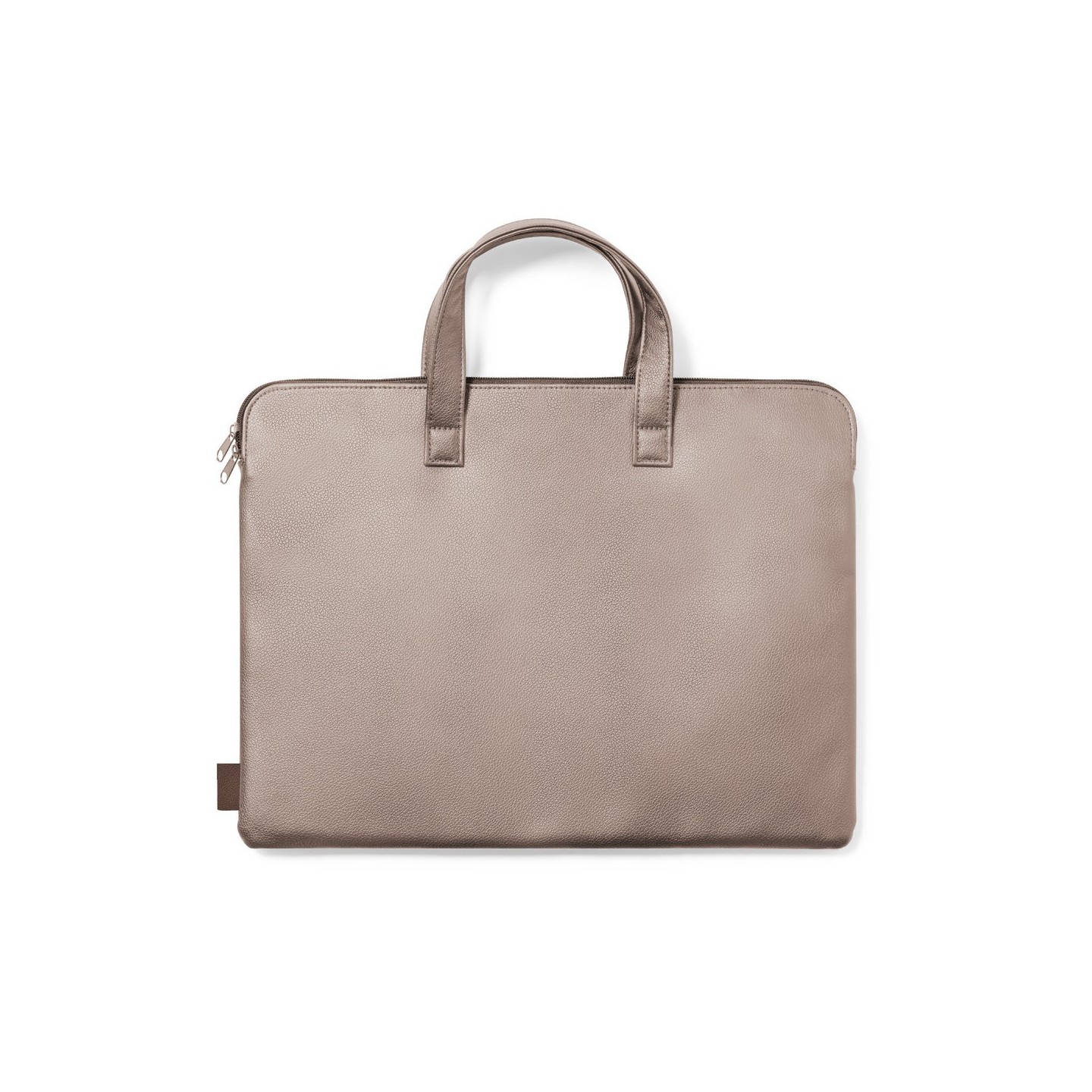 Portadocumentos premium de cuero reciclado, con cierre de cremallera y doble tirador metálico. Interior acolchado, bolsillo exterior y asas reforzadas.