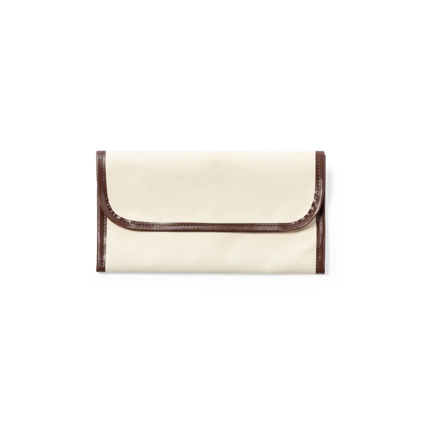 El portadocumentos Farrel es el compañero perfecto para tus viajes. Fabricado en resistente poliéster 600D con acabado natural, con detalles en polipiel marrón que le dan un toque elegante. Cuenta con una solapa con cierre de velcro y múltiples compartimentos interiores para organizar tus documentos y objetos personales. Ideal para llevar todo en orden y con estilo durante tus desplazamientos.