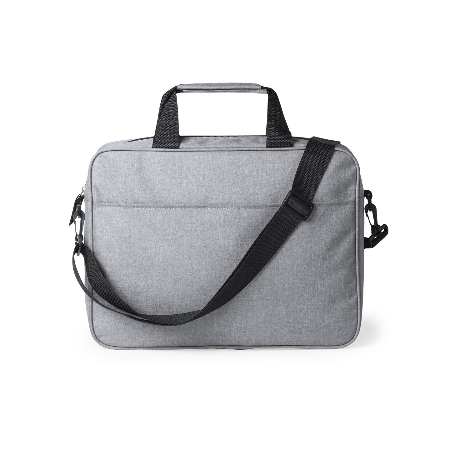 Portadocumentos Zestar de poliéster 600D gris con cierre de cremallera, bolsillo exterior con velcro, asas reforzadas, cinta bandolera ajustable y accesorio para acople en barra de trolley.