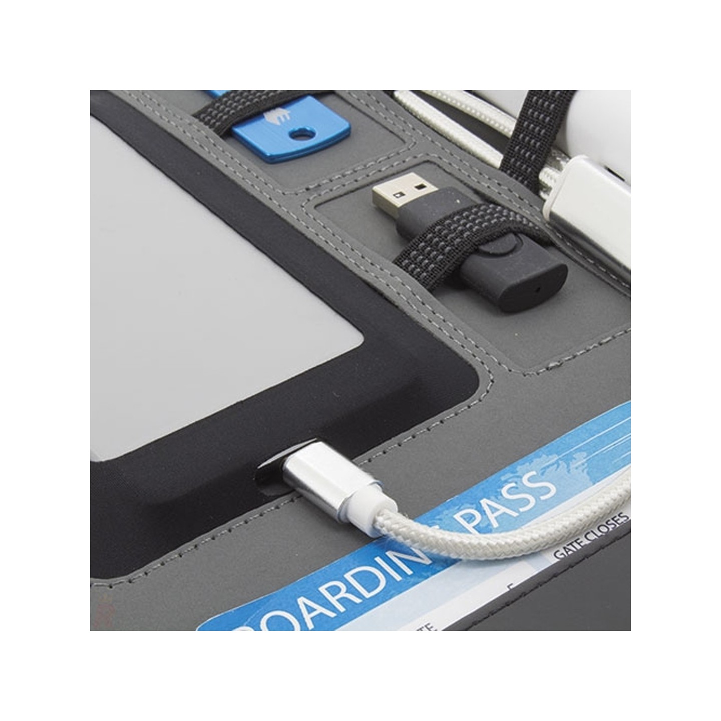 - Zonas de almacenamiento: Incluye elásticos para memorias USB, power banks y otros accesorios.