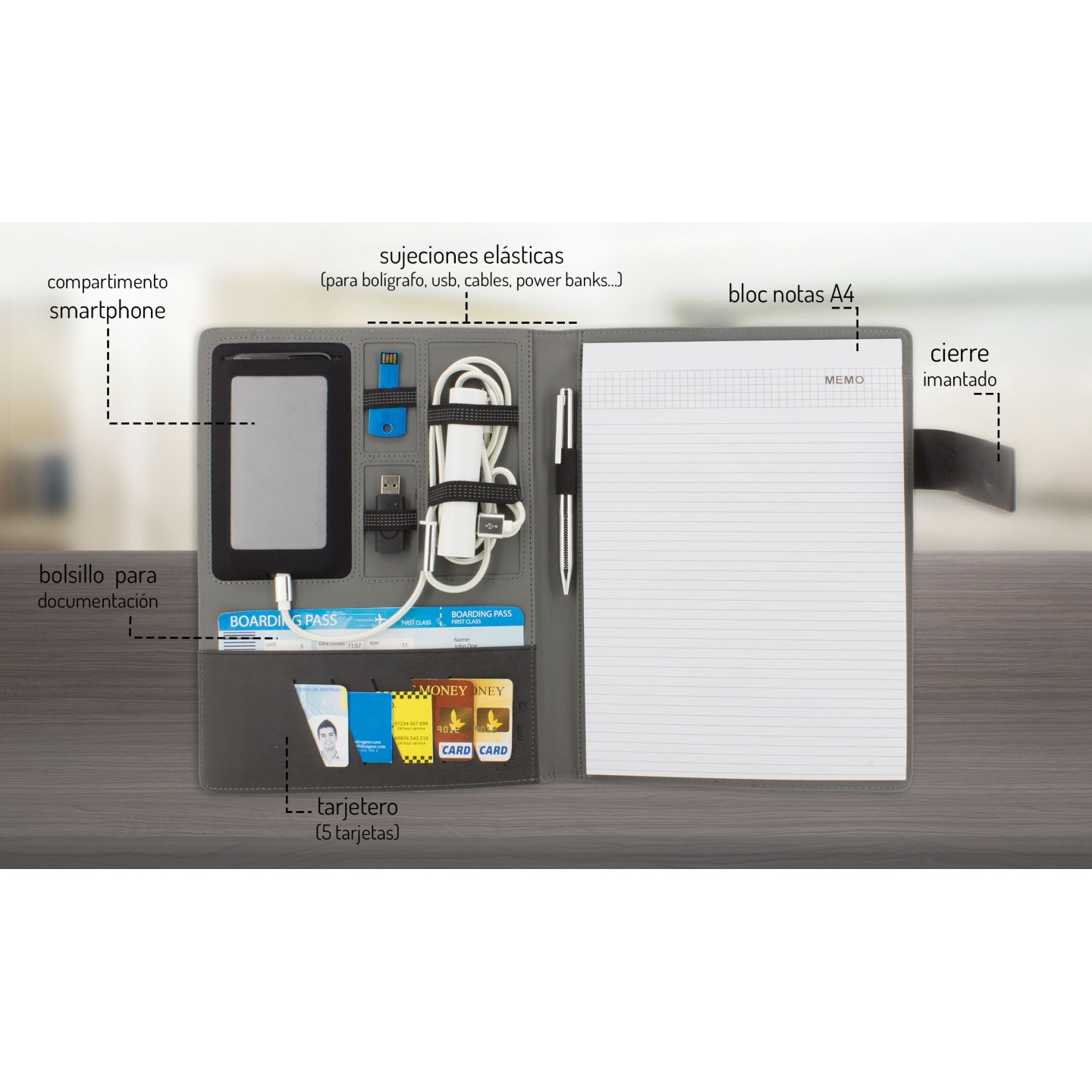 - Bloc de notas tamaño A4: Para tus apuntes, reuniones y trabajo diario.