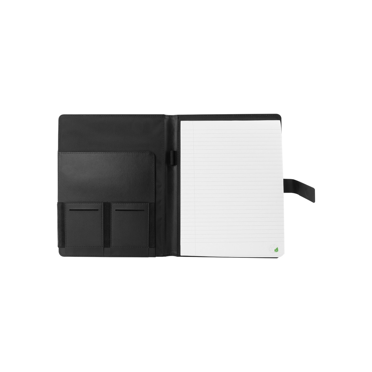El bloc interior de 20 hojas rayadas, hecho de material reciclado, no solo proporciona un espacio funcional para tus ideas, sino que también refleja nuestro compromiso con la sostenibilidad. El cierre magnético y la superficie para marcaje agregan un toque de versatilidad y personalización a este portafolios.