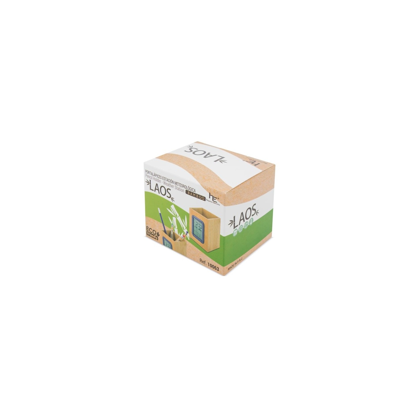 En resumen, el Portalapicero Estación Meteorológica LAOS es una solución práctica y elegante para mantener tu escritorio organizado, mientras te proporciona información meteorológica esencial. Su fabricación en bambú y la posibilidad de personalización lo convierten en una opción destacada para regalos de empresa que reflejan responsabilidad ambiental y buen gusto.