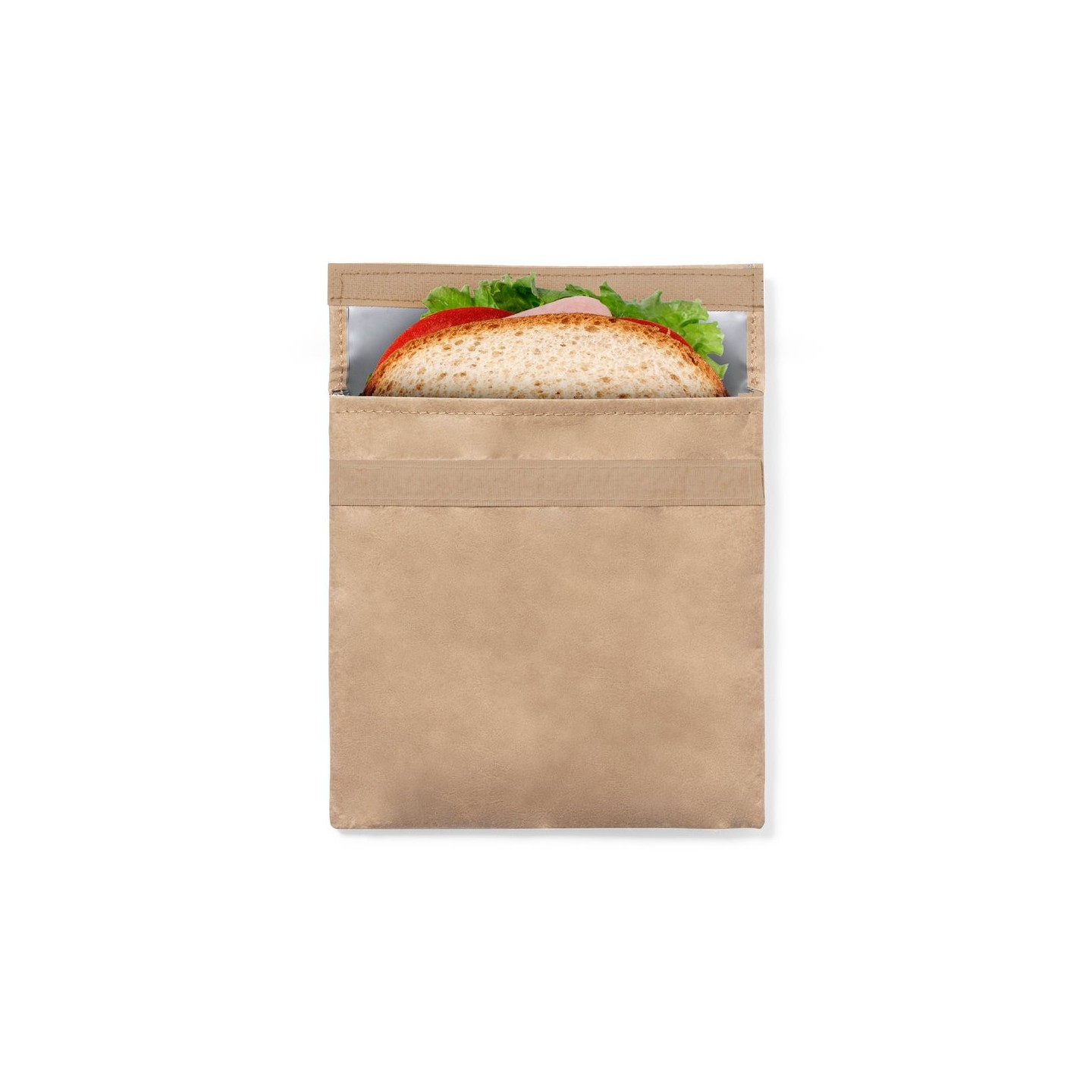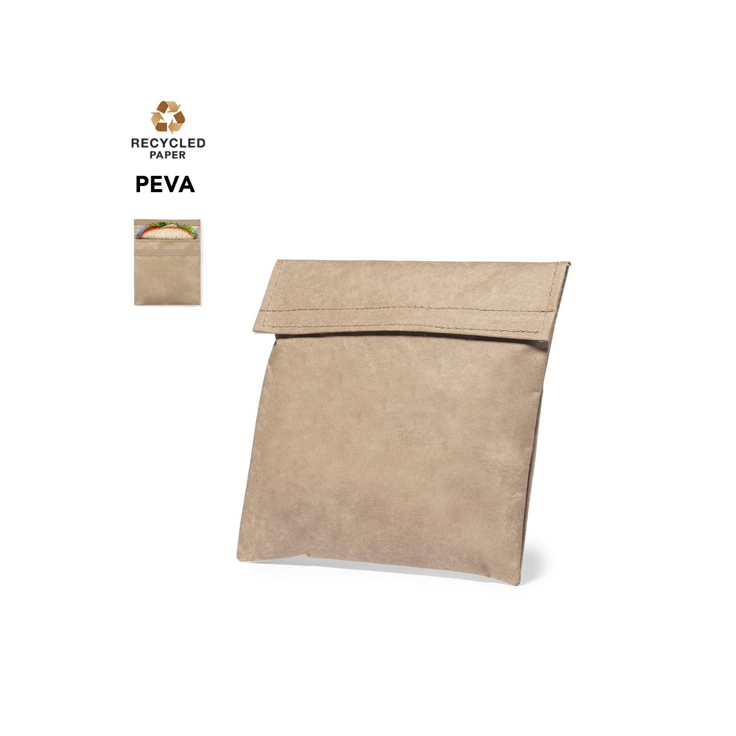 El Portasnacks térmico Akiles es de papel reciclado laminado, interior isotermo en PEVA, cierre de velcro. Mantén tus snacks frescos y sabrosos en cualquier lugar.