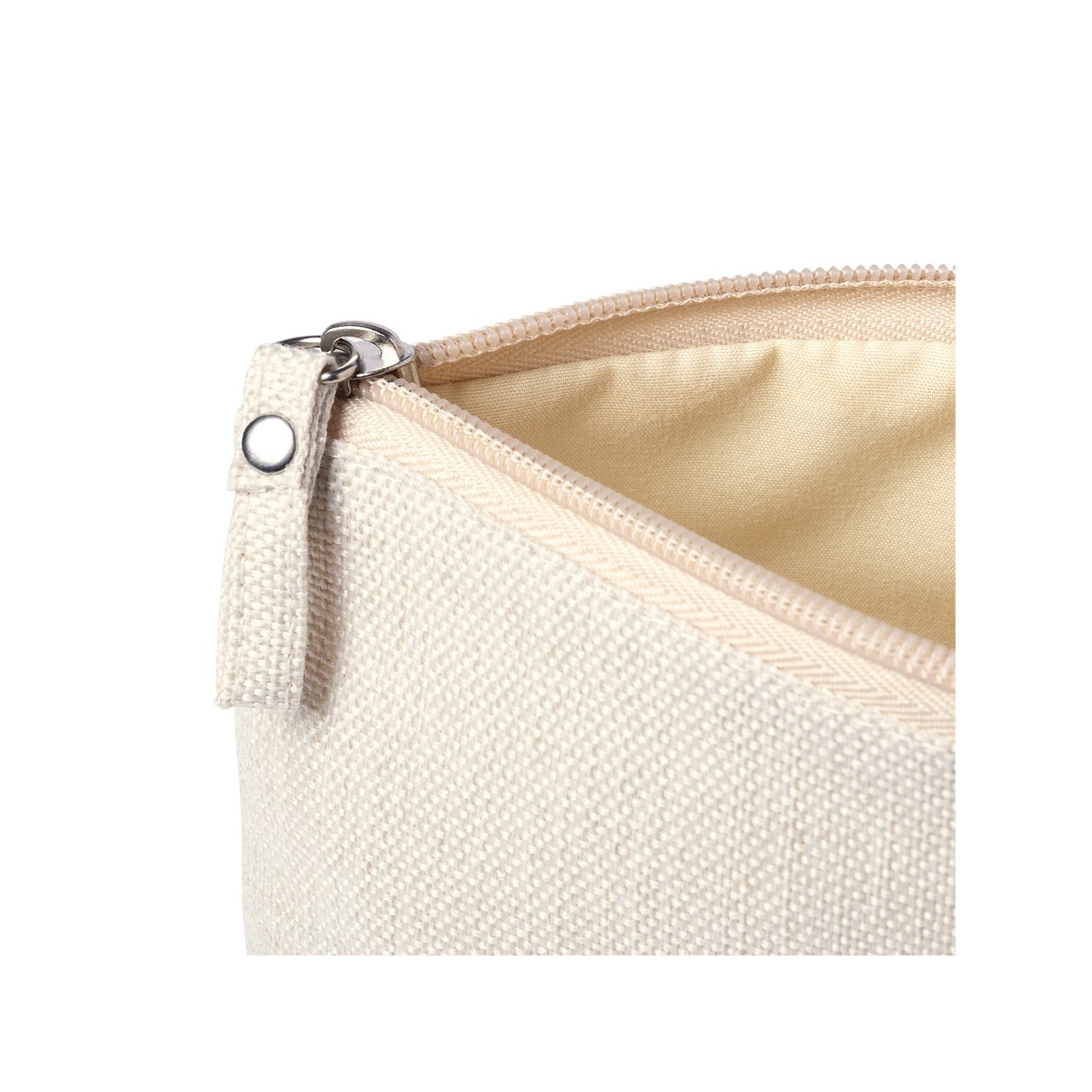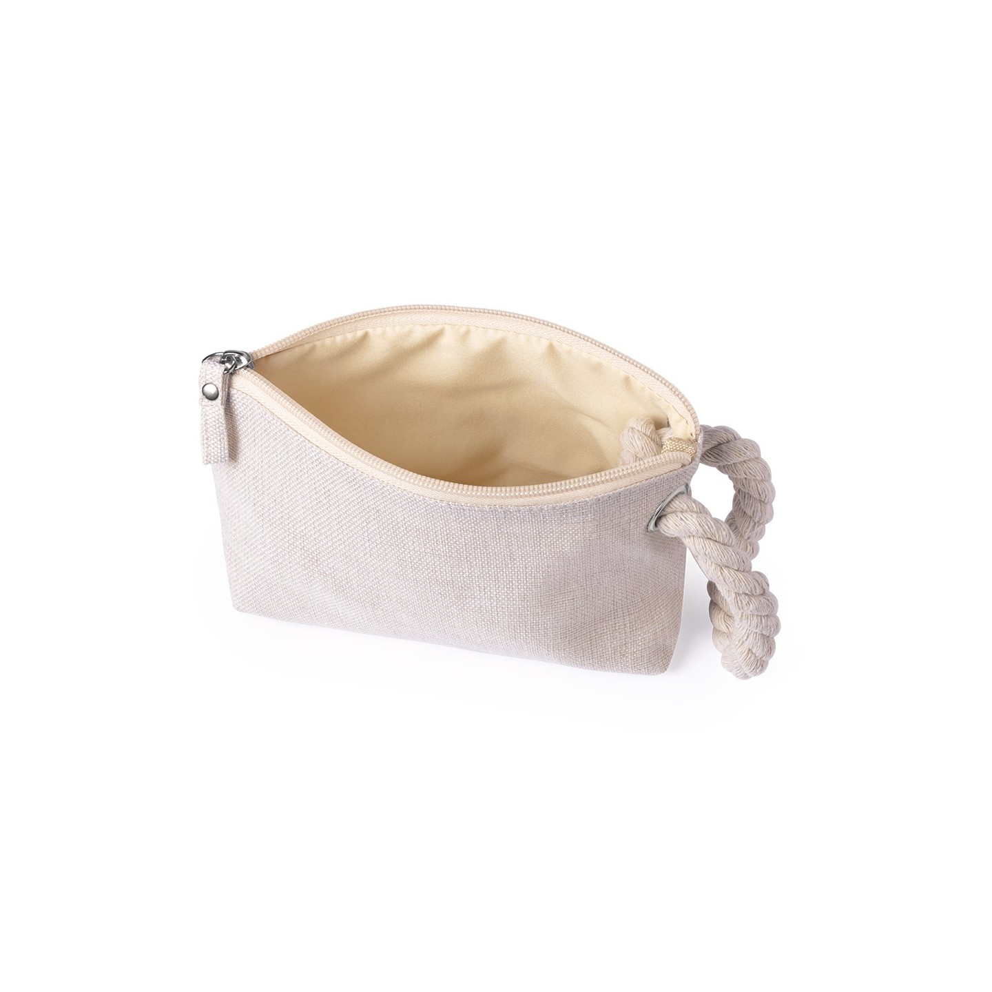 Portatodo Babit: multiusos, suave combinación de algodón y poliéster en tonos crudos naturales. Cremallera a juego y práctica asa trenzada.
