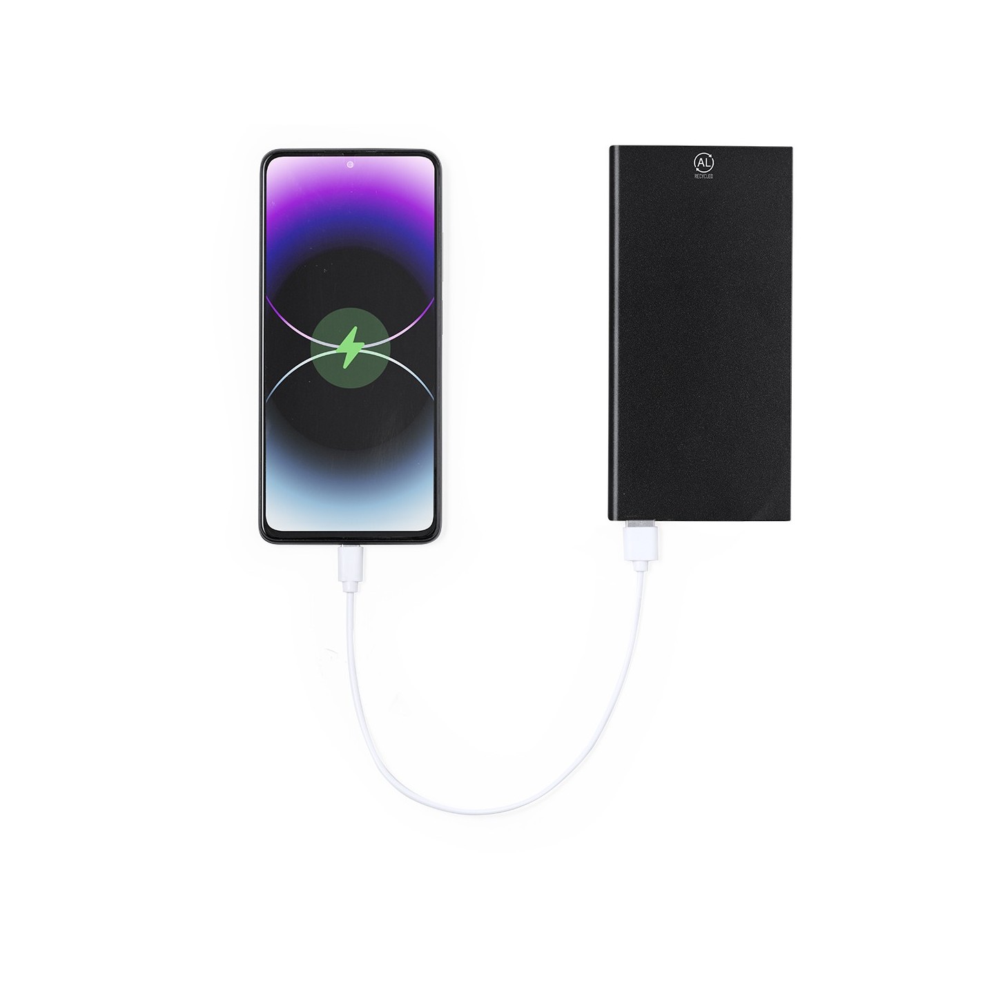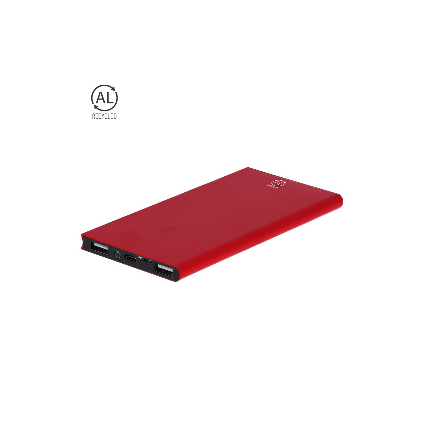 El Power Bank BARROLS es una batería auxiliar externa de alta capacidad, con 8.000 mAh, fabricada en Aluminio Reciclado. Este material se caracteriza por sus posibilidades de reciclaje casi infinitas, sin perder sus propiedades originales y con un proceso que consume menos energía, contribuyendo así al cuidado del medio ambiente. Además, el power bank incluye un distintivo de Aluminio Reciclado que refleja su compromiso ecológico.
