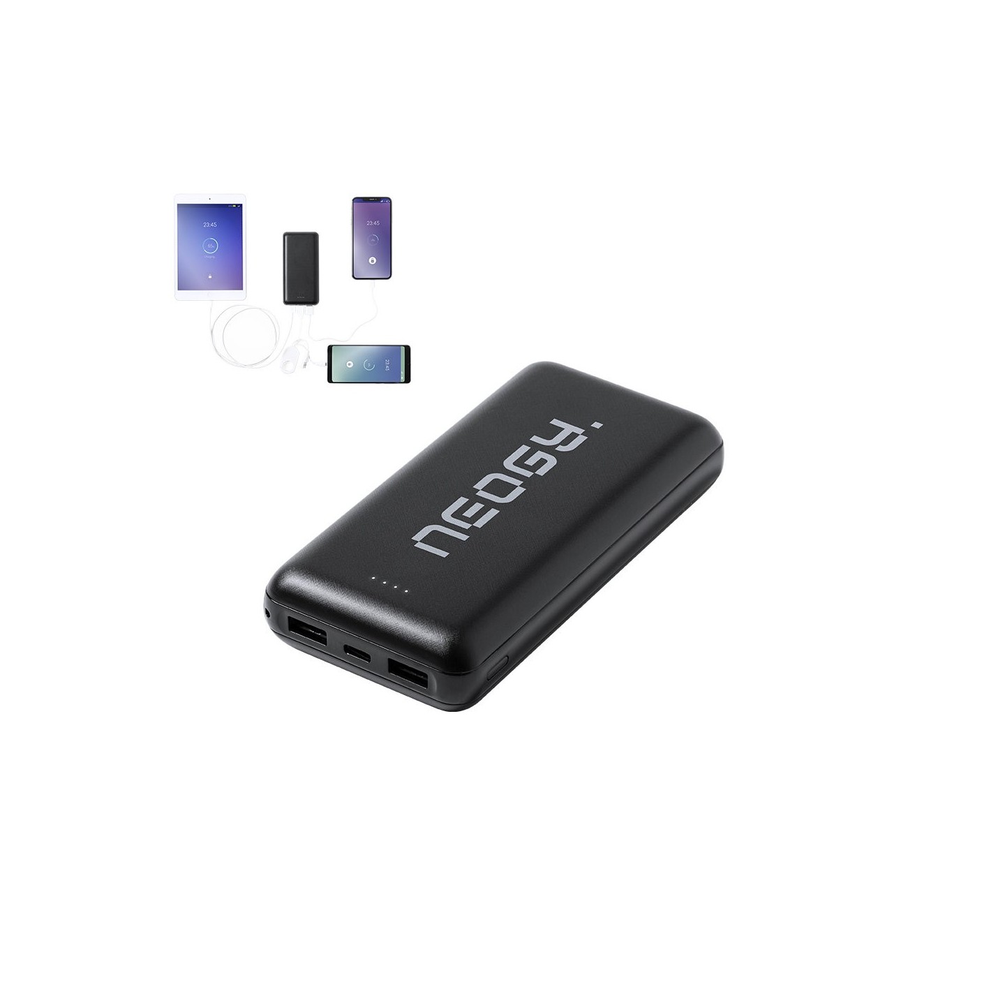 El Power Bank Kiubert deslumbra con sus 20.000 mAh, conexión Tipo-C y doble salida USB. Carga hasta 3 dispositivos a la vez. Diseño curvado y personalizable.