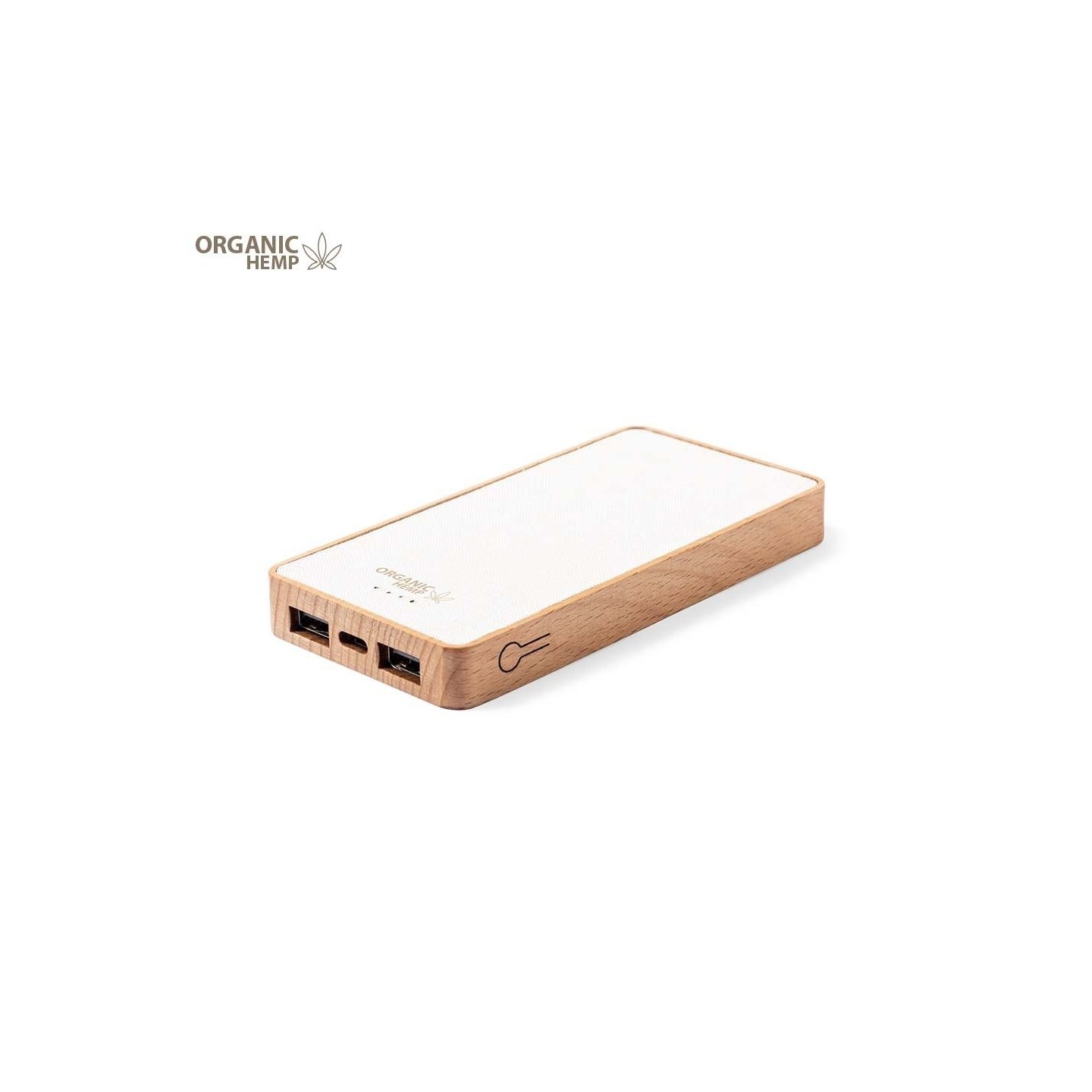 Batería auxiliar externa de 8.000 mAh. Con carcasa fabricada en combinación de cáñamo orgánico y madera natural.