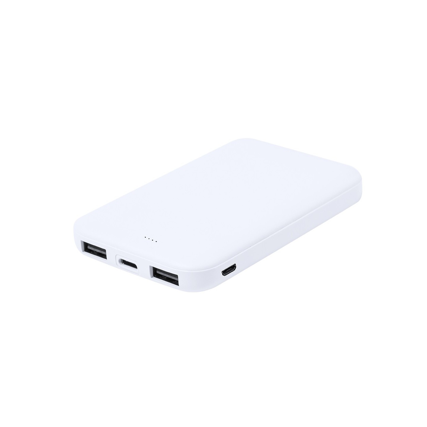 Batería externa compacta Nawey RCS, 5.000 mAh, USB dual, diseño eco-friendly. Personalizable con tu logotipo.