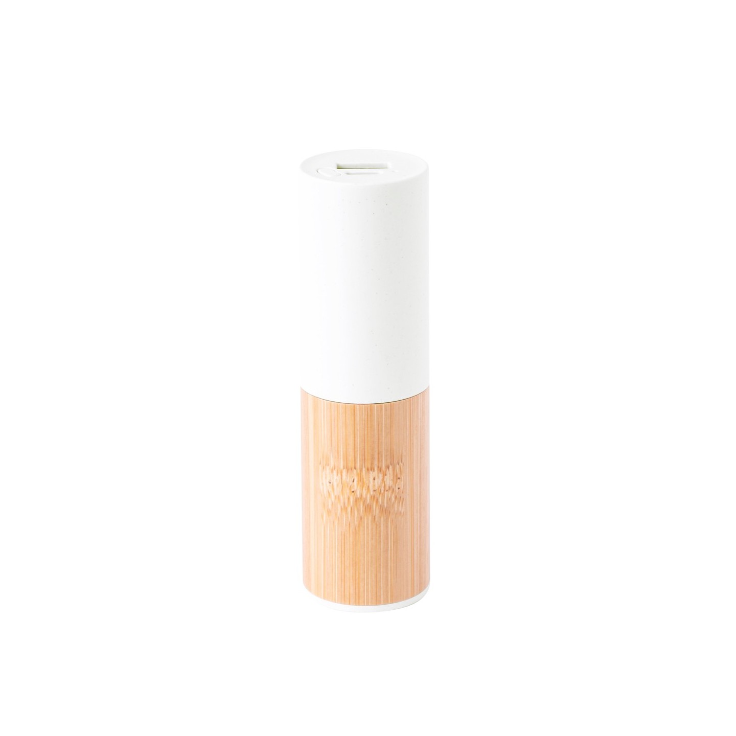 Batería externa eco-friendly de 4.500 mAh, diseño cilíndrico. Con USB y Tipo C. Personalizable.