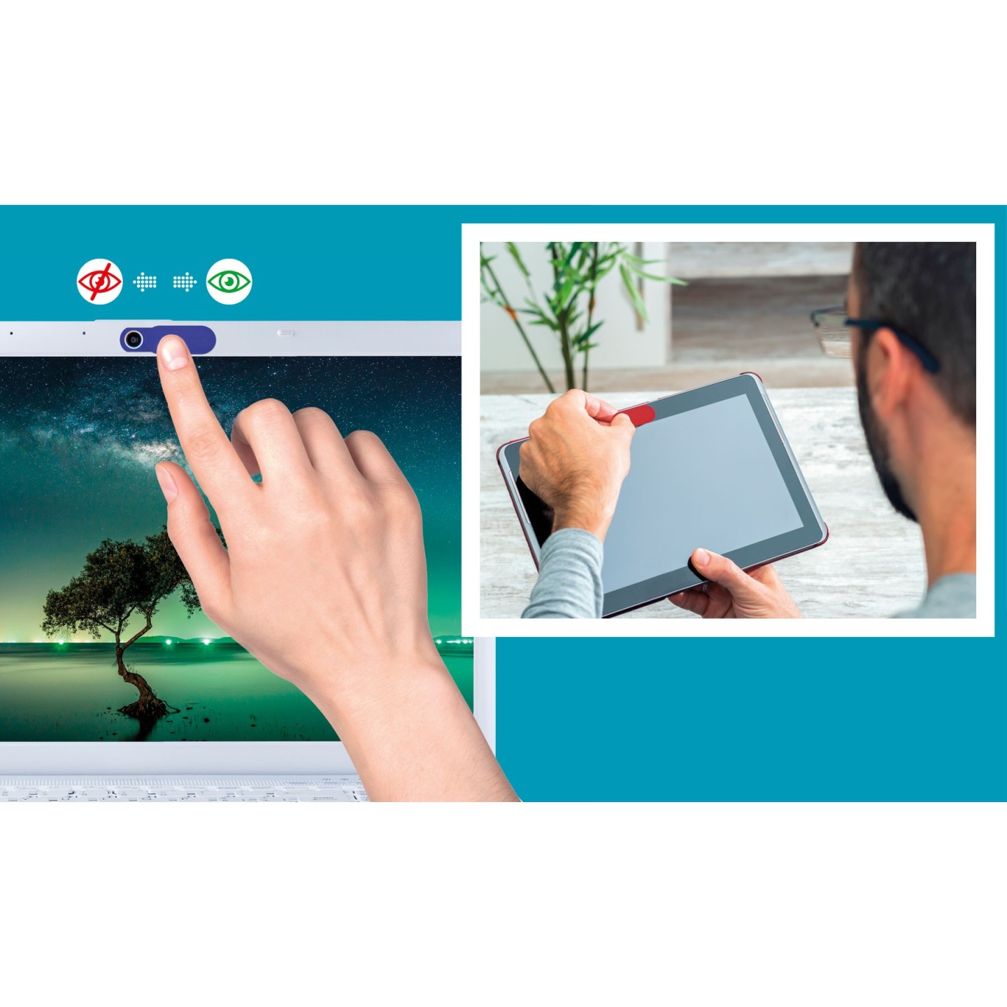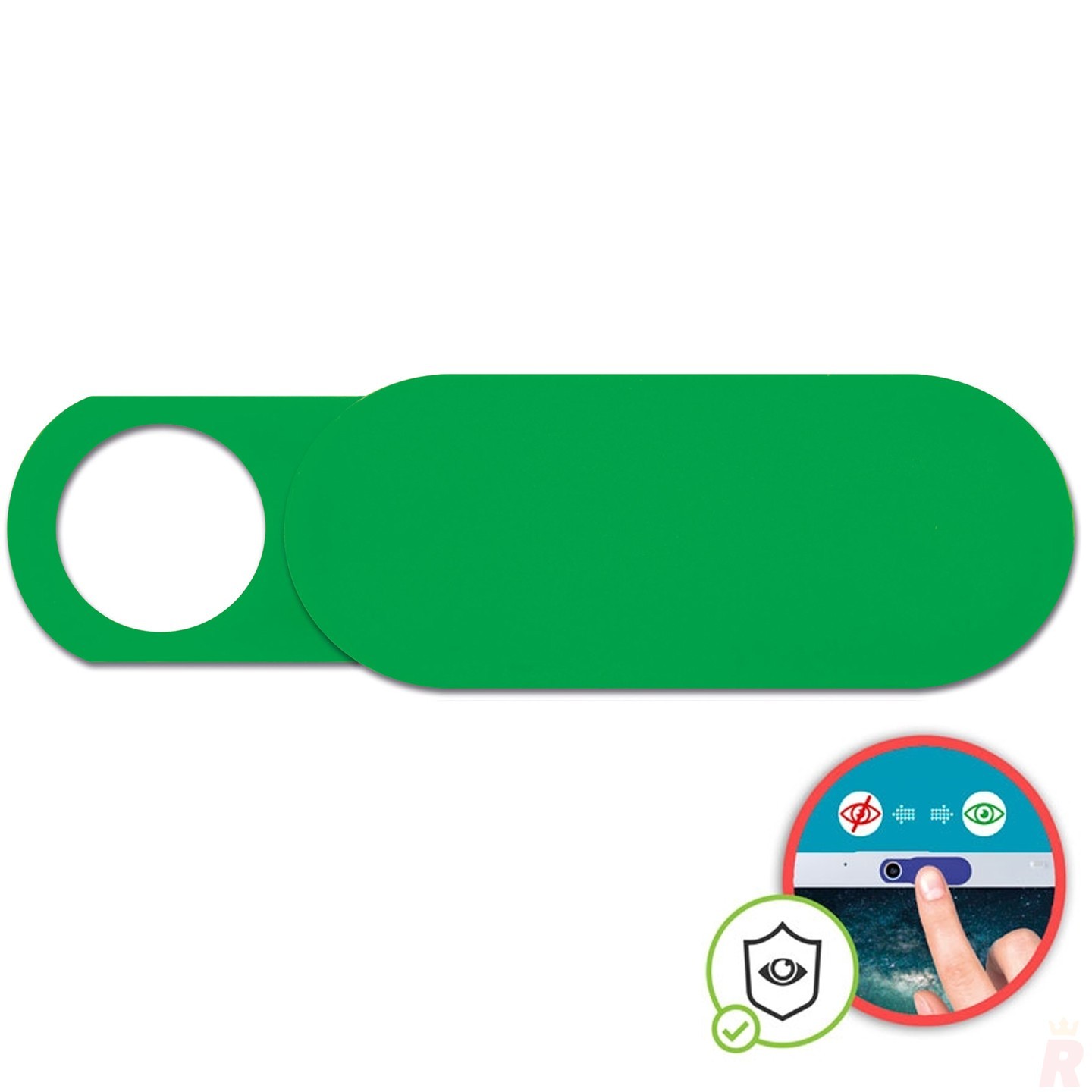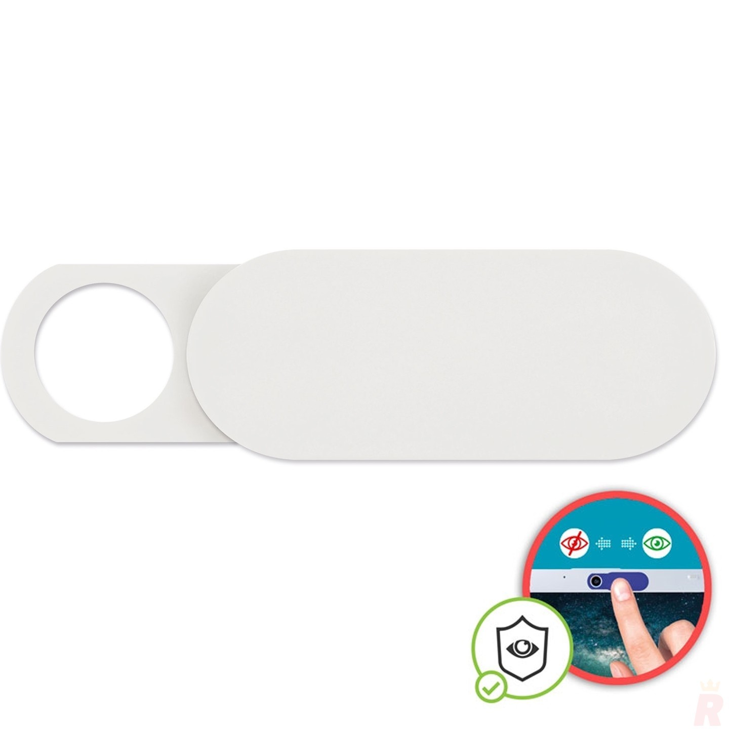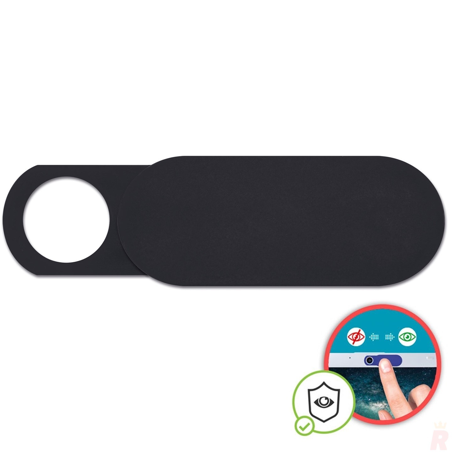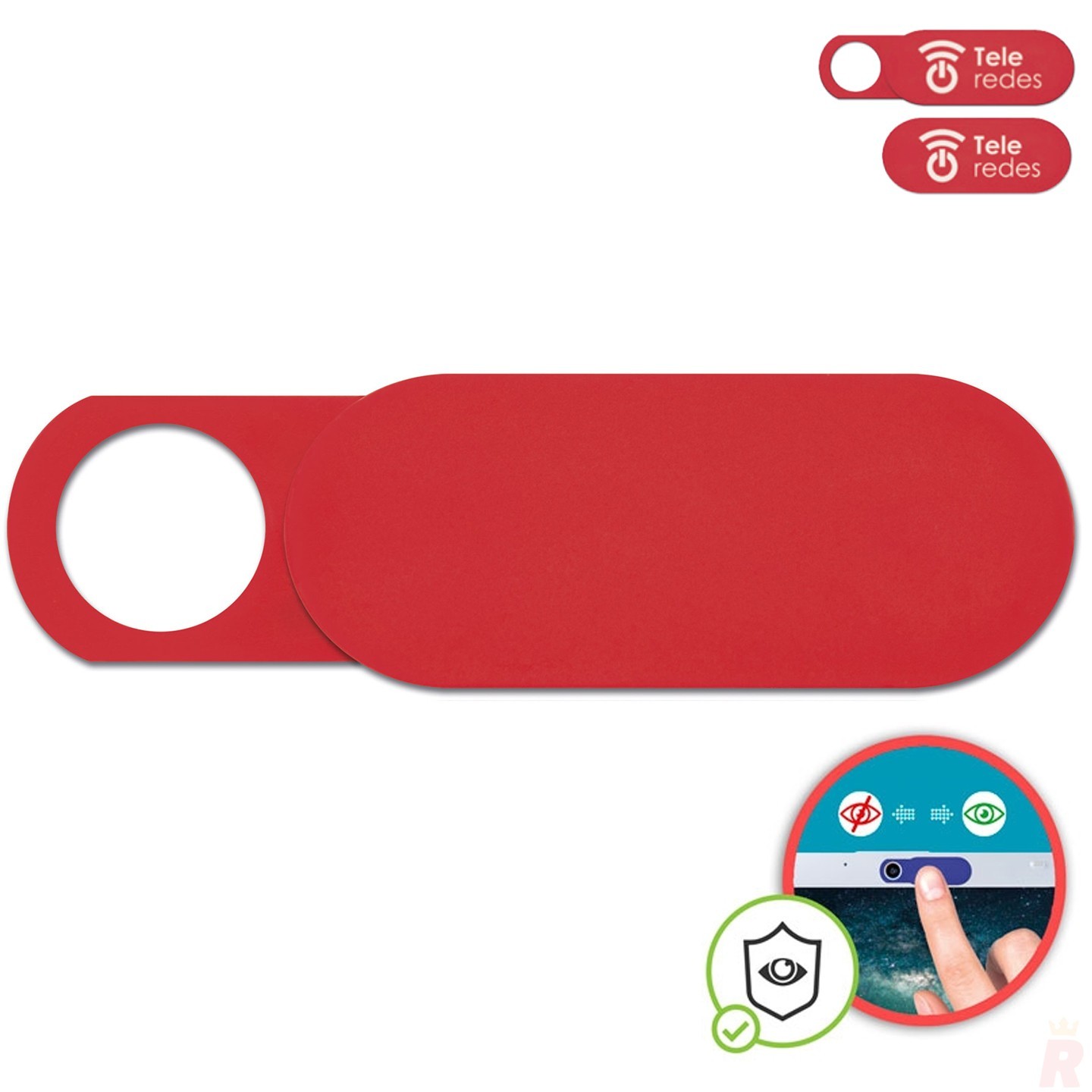 Protector de cámara fabricado en ABS con adhesivo y tapa deslizante. Garantiza privacidad en tus dispositivos. Personalizable con logotipo