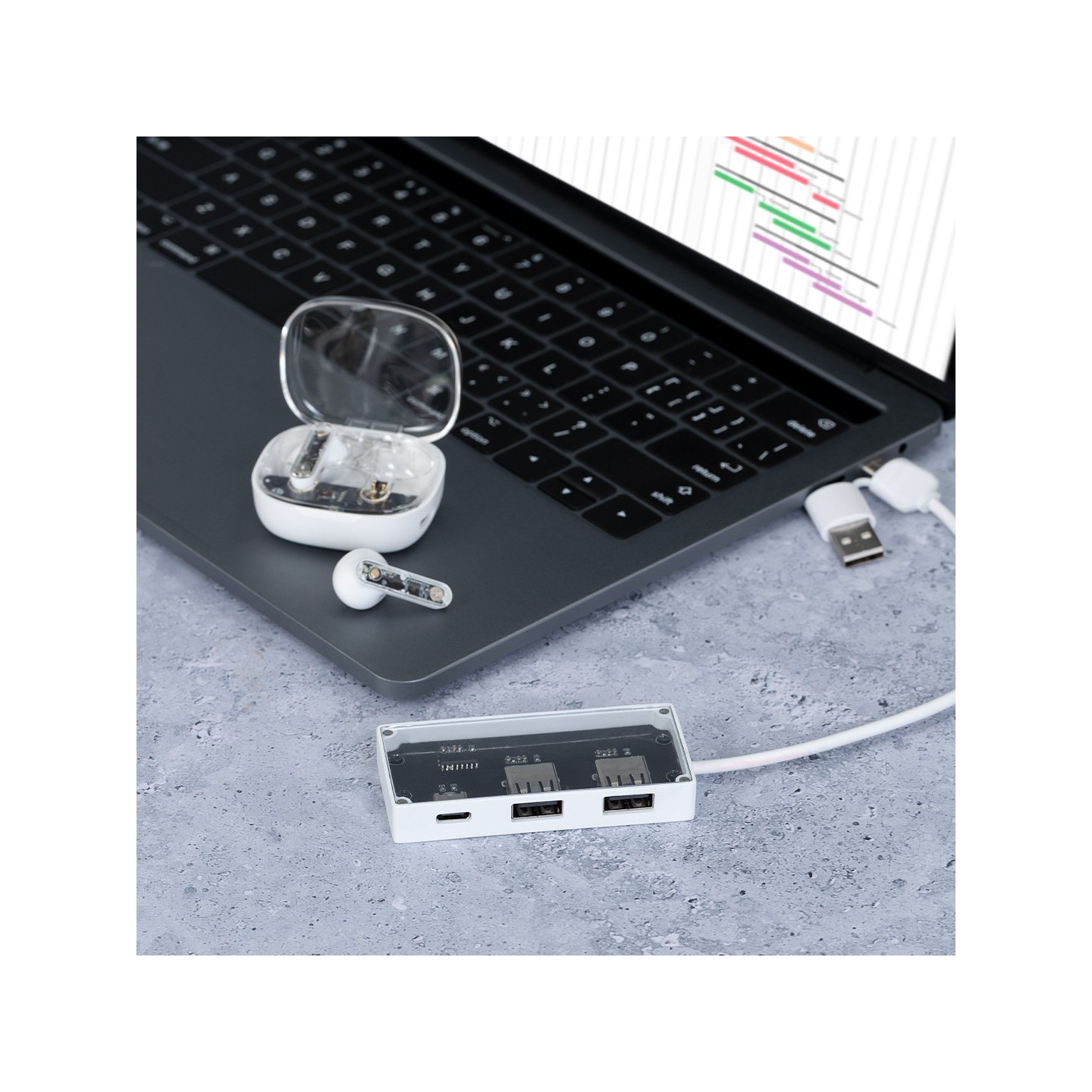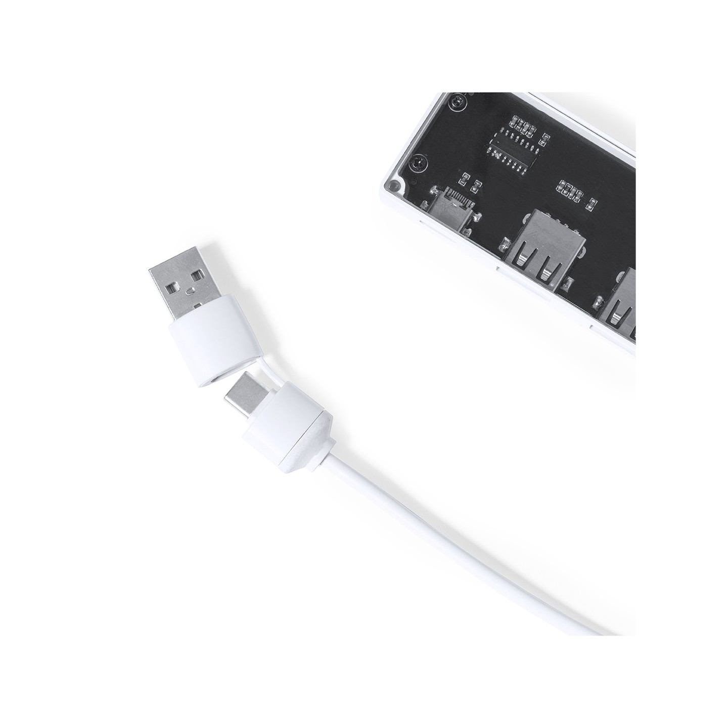 El Puerto USB Hevan es 2.0, diseño transparente, Tipo C, 2 USB. Versátil, funcional y seguro. Ideal para múltiples dispositivos.