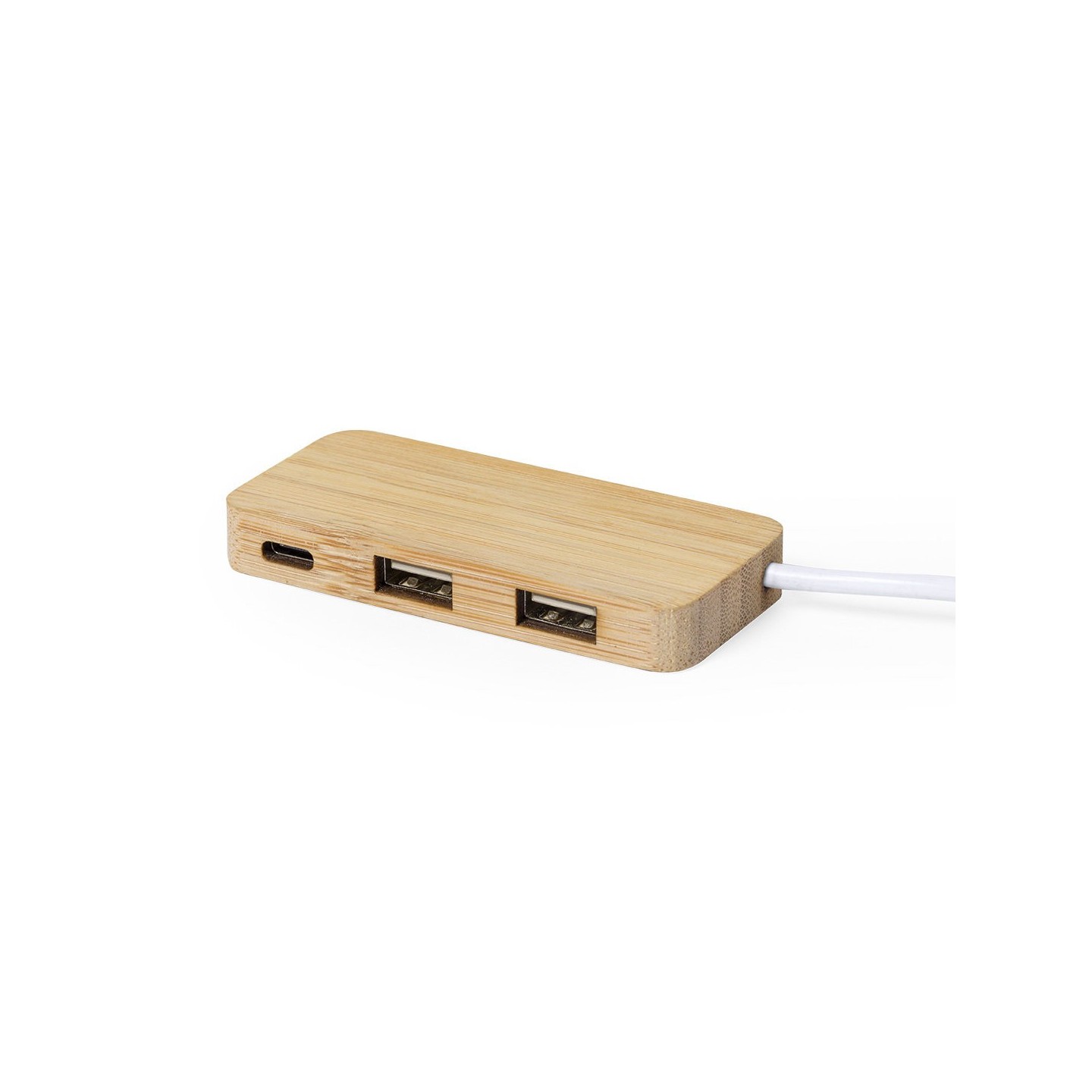 El Puerto USB Norman combina naturaleza y tecnología en bambú con 1 puerto Tipo C y 2 puertos USB. Regalo corporativo eco-amigable.