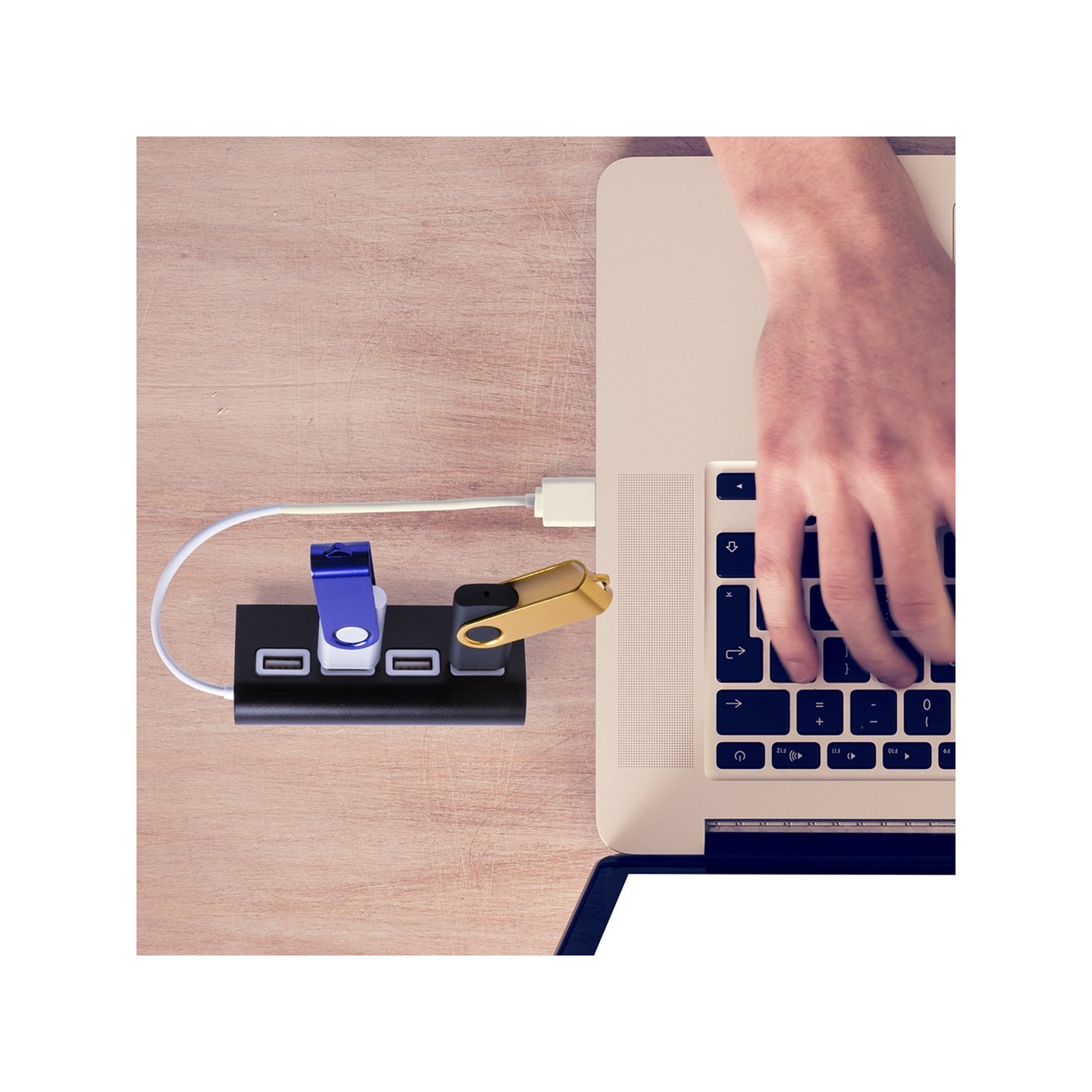 Puerto USB de diseño bicolor y elegante acabado en aluminio. Incorpora 5 puertos USB 2.0 para conectar multitud de dispositivos y está especialmente diseñado para marcaje en láser. Presentado en caja individual.