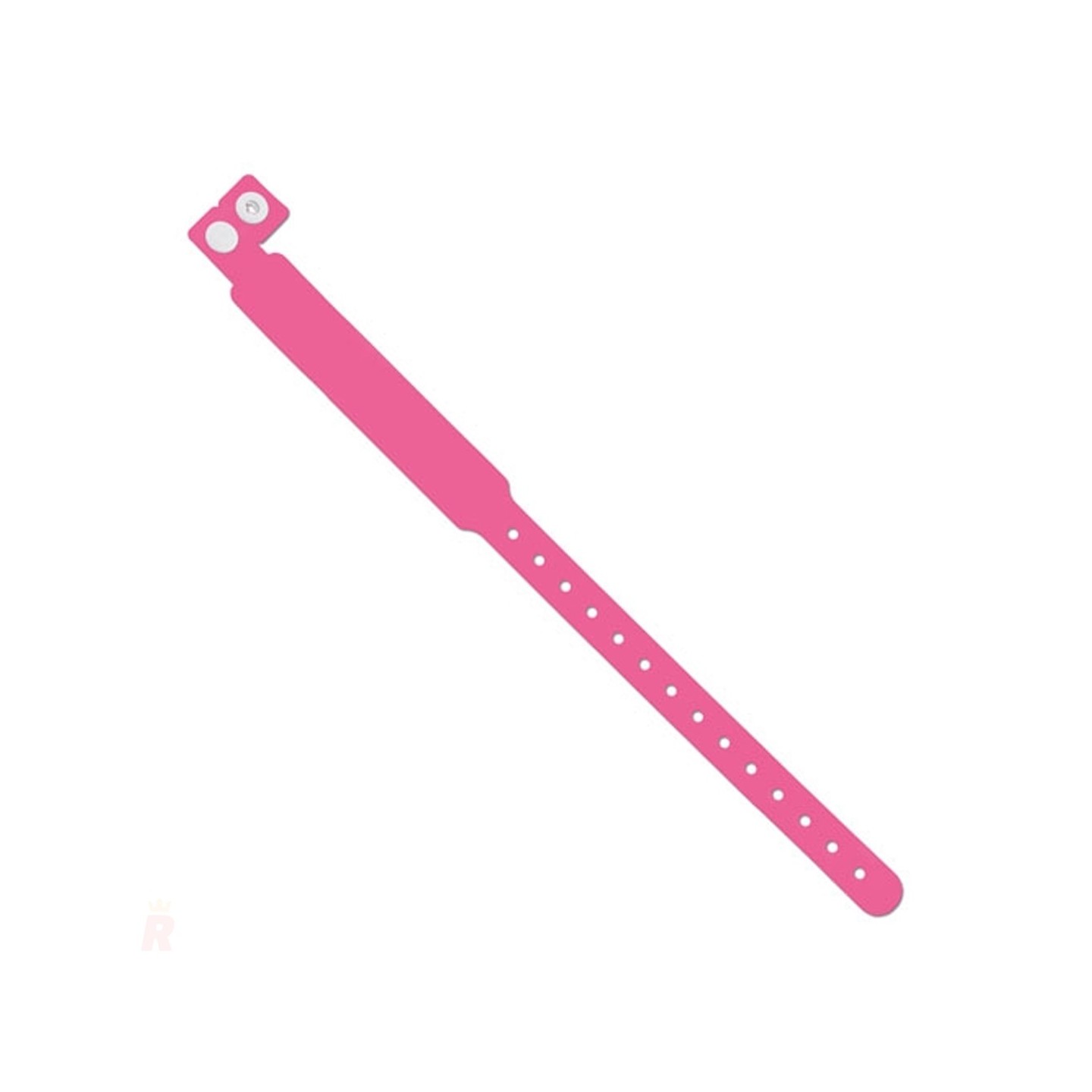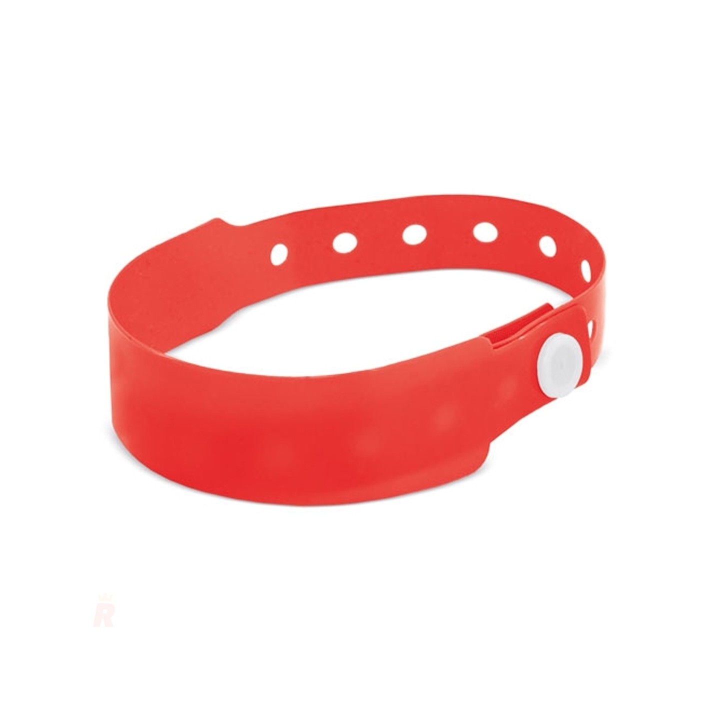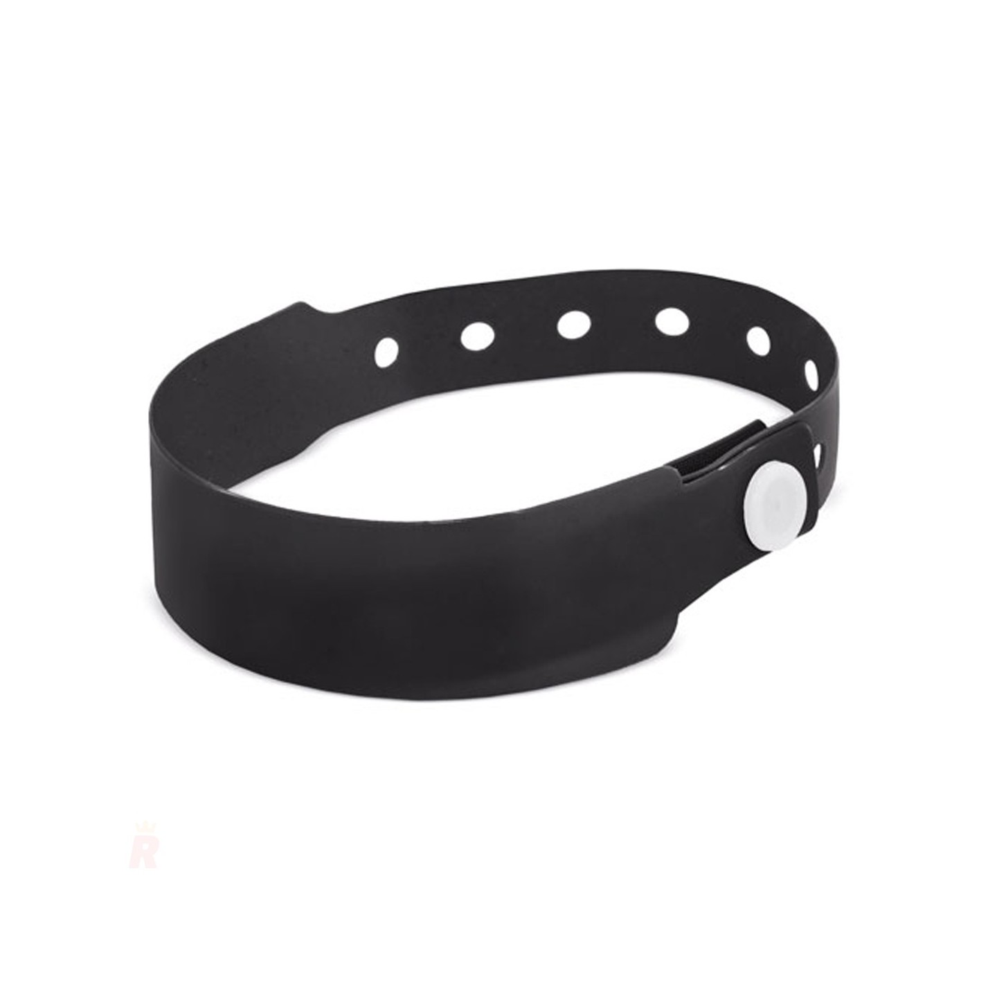 Pulsera identificativa de PVC con cierre ajustable y diseño de un solo uso. Personalizable con logotipo, perfecta para eventos y control de acceso