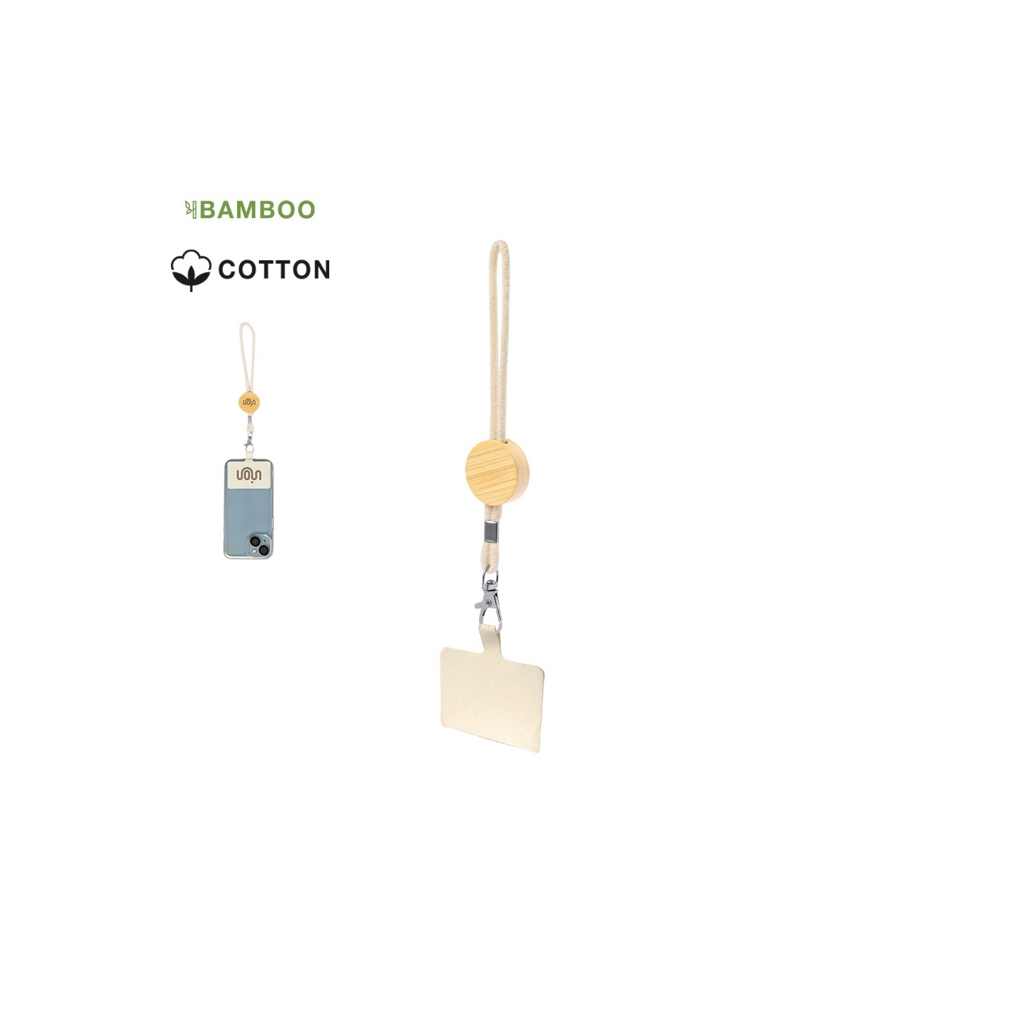 La Pulsera Soporte Harlux es práctica y estilizada, con accesorio de transporte para móvil. Personalizable con grabado en bambú