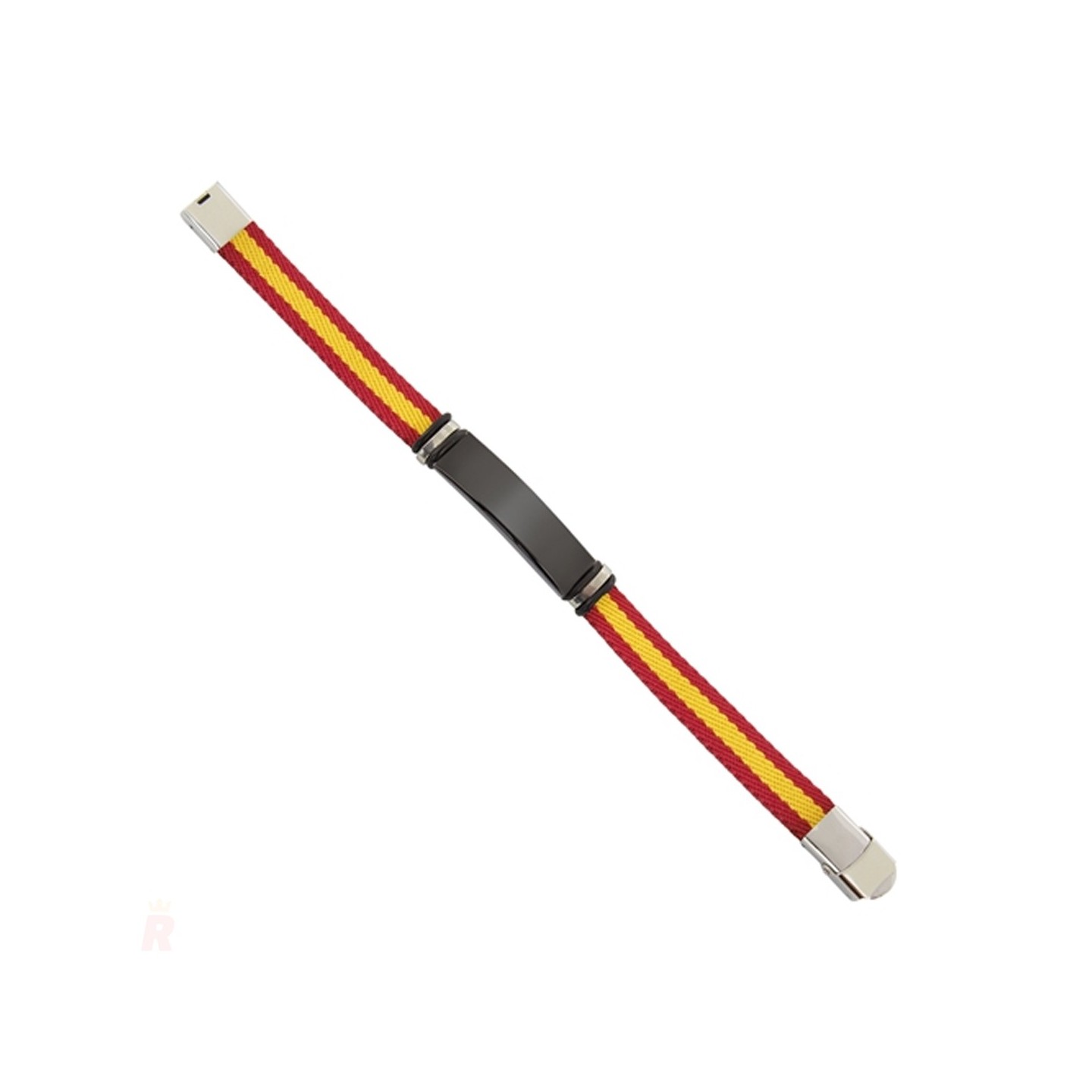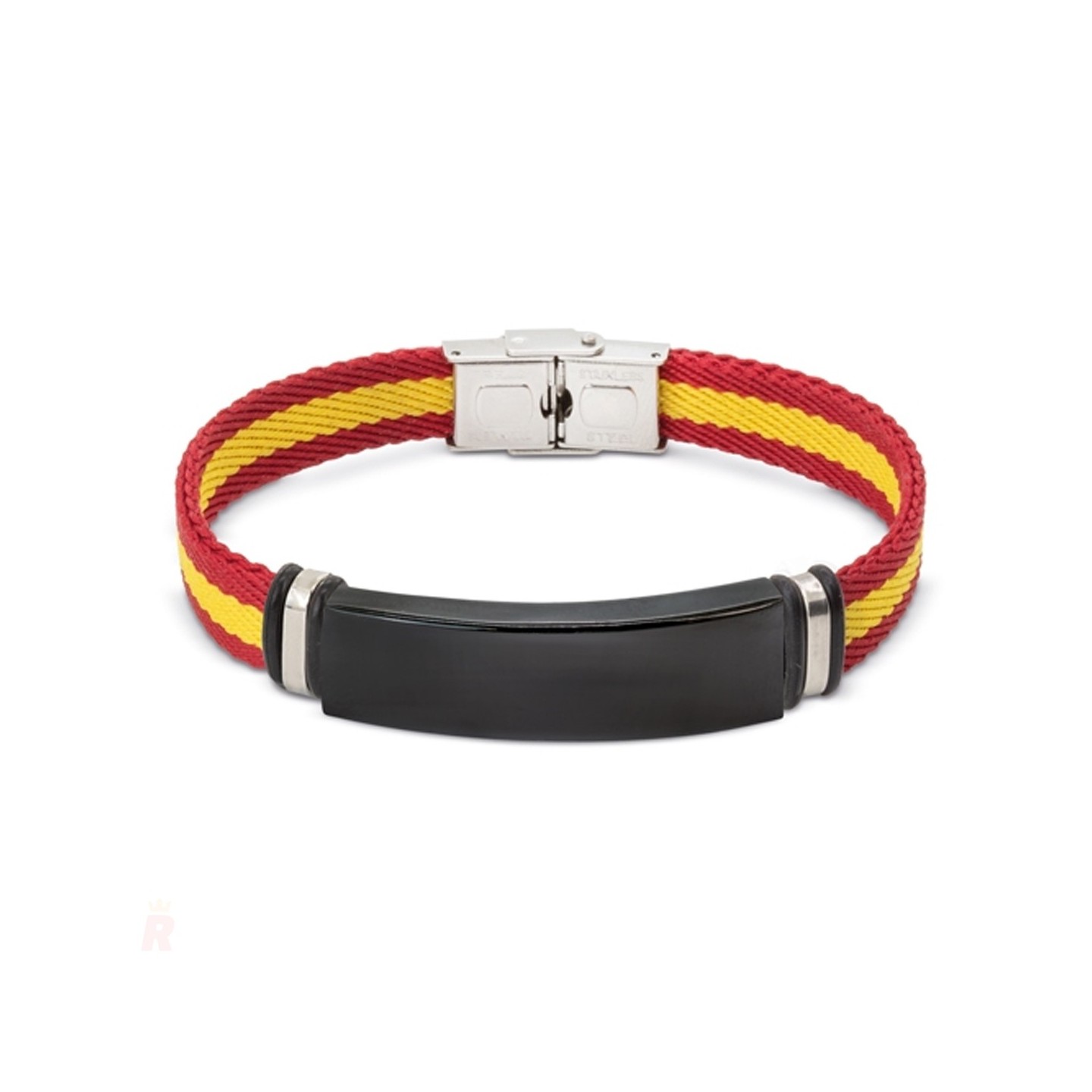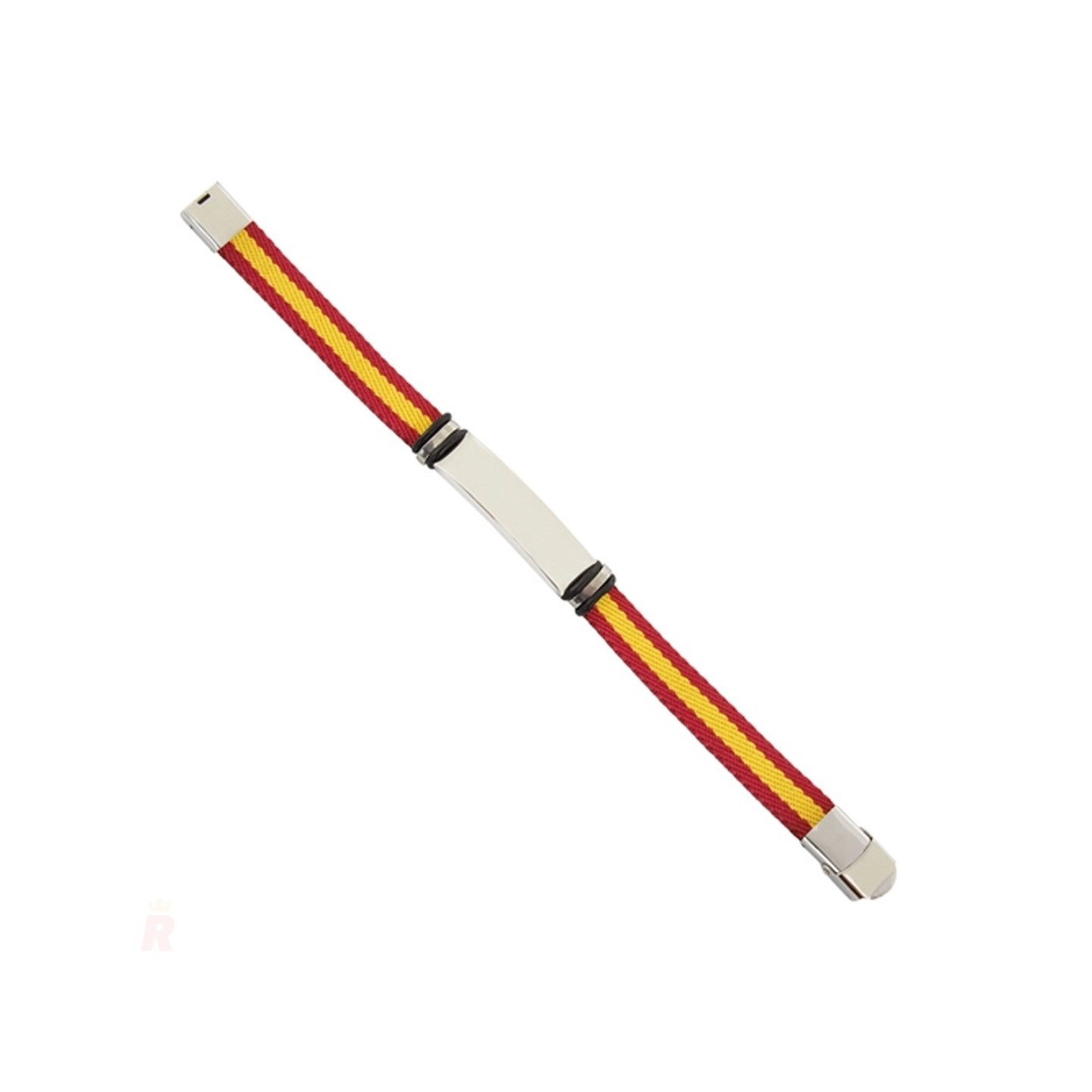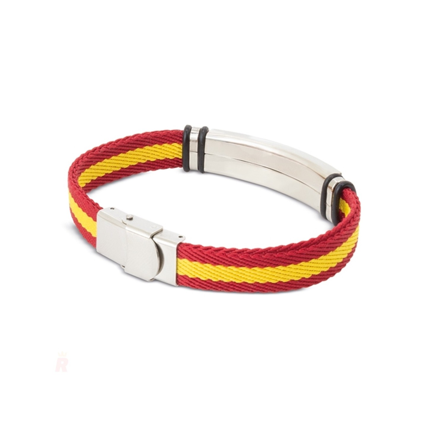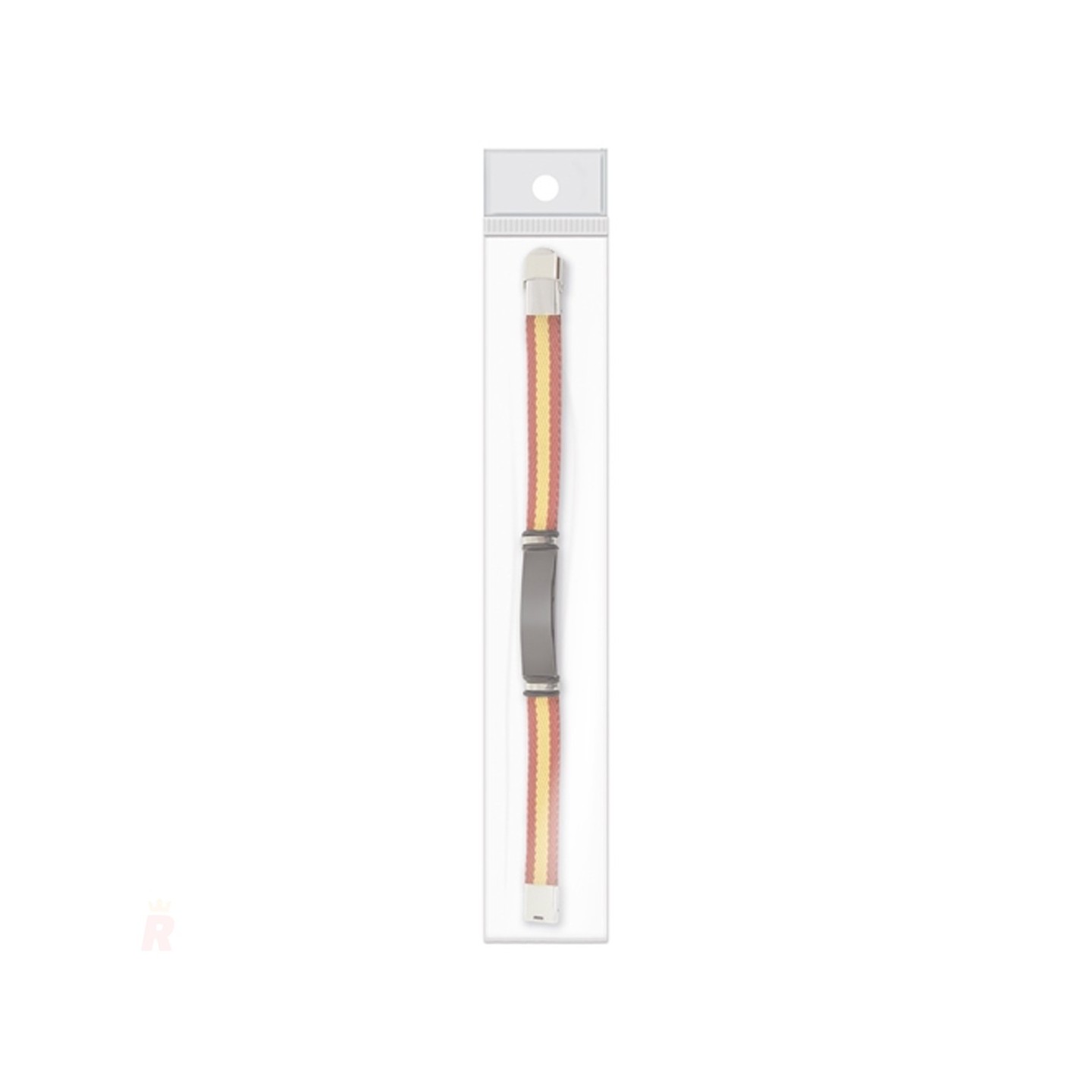 Pulsera casual con poliéster y acero inoxidable, detalles de la bandera de España. Elegante y personalizable con logotipo. Ideal para promociones.