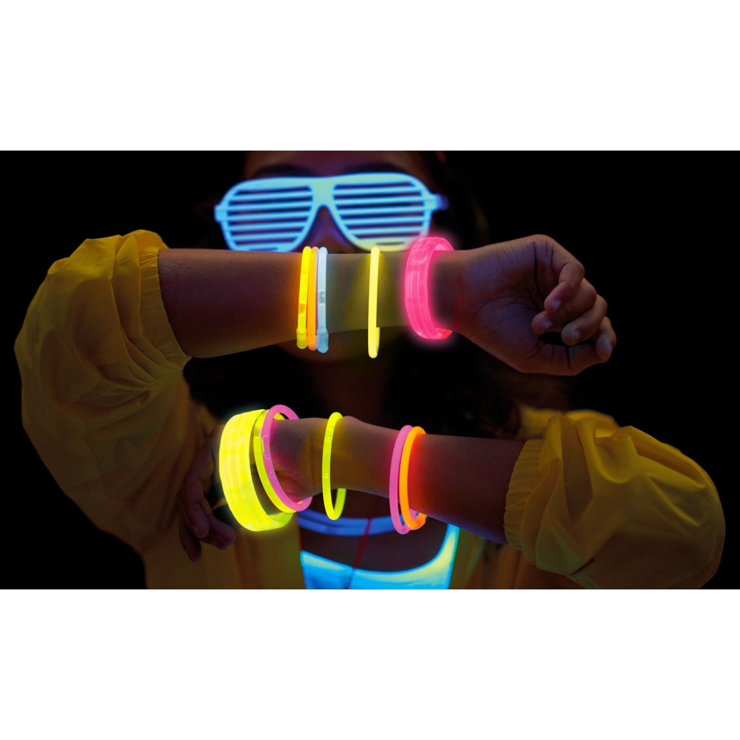 - Material: Pulseras fluorescentes elaboradas en ABS, un material conocido por su resistencia y durabilidad.